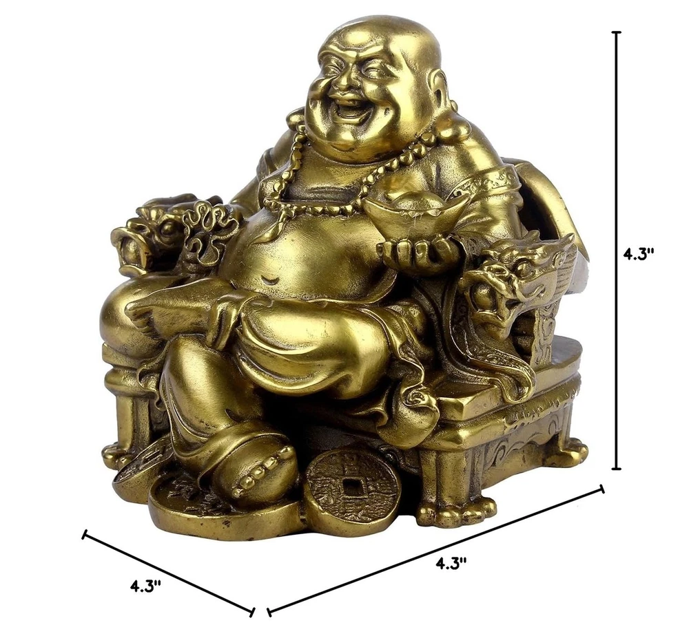 BRABUD Feng Shui Handmade Maitreya Laughing Buddha Statue Sitting on Emperor's Chair Sculpture Home Indoor Outdoor Decorative Ornament Product Details Product Dimensions: 4.3 x 4.3 x 4.3 inches Item Weight: 1.63 pounds Manufacturer: CHANGSHENG BRONZE TECHNOLOGY CO.LTD. Item model number: BS-125 Is Discontinued By Manufacturer: No Specific instructions for use: Indoor, Outdoor Volume: 1 Cubic Centimeters Fabric Type: 100%copper Finish types: Brass Number of pieces: 1 Batteries required: No 100%copper Product SizeLength 4.3'', width 4.3'', height 4.3''.