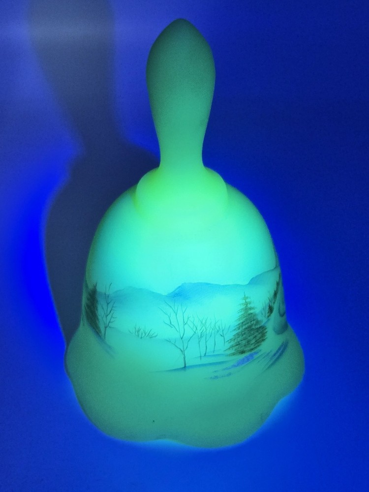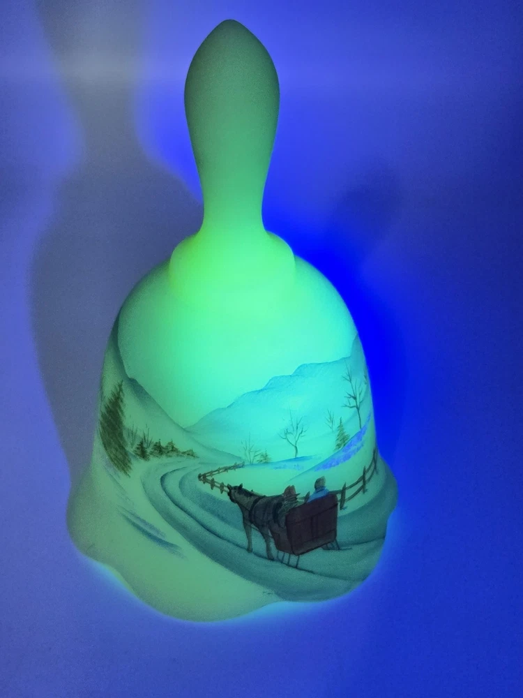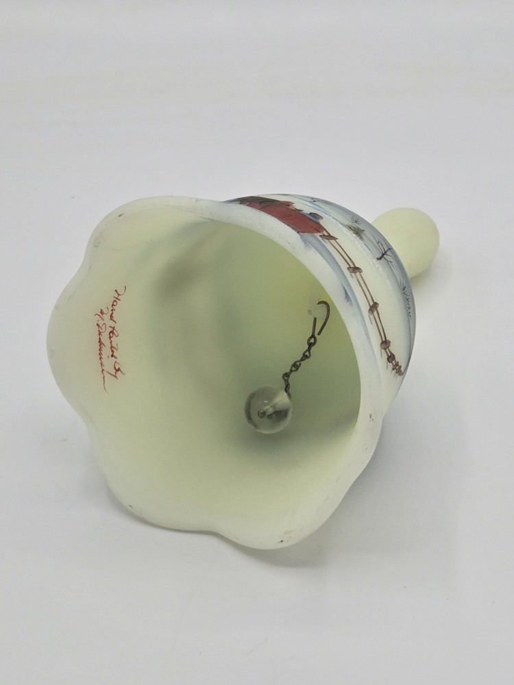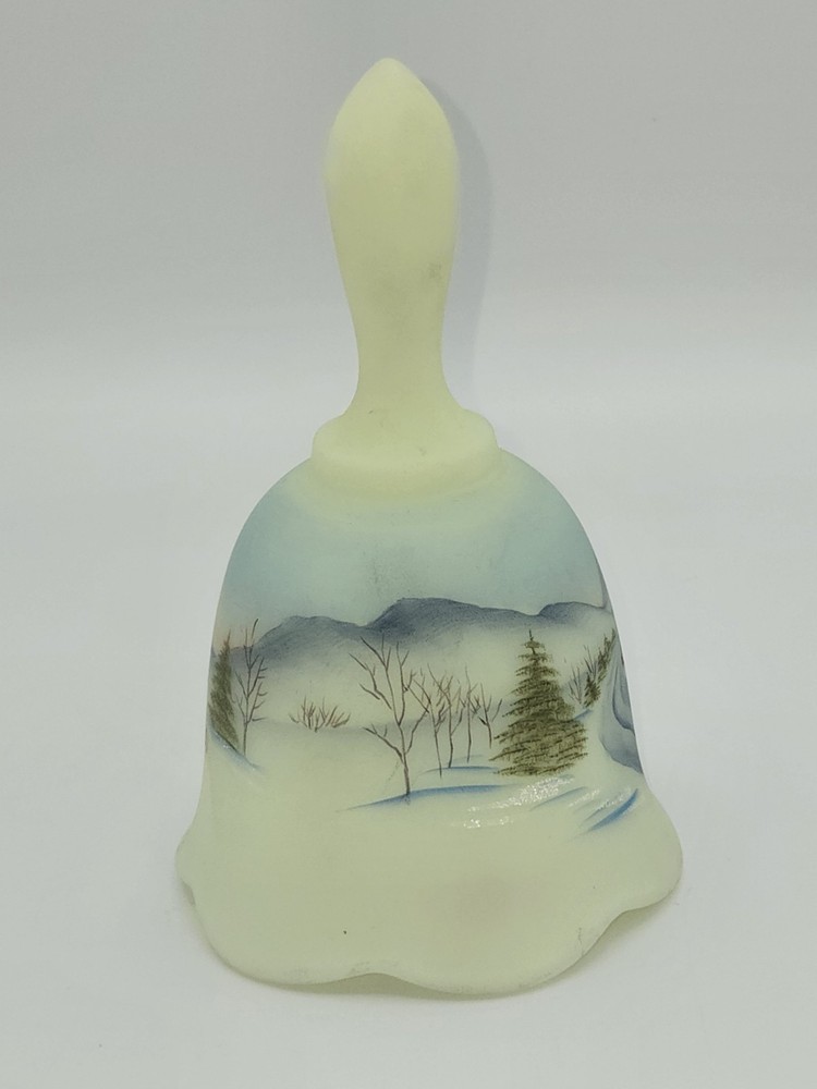 Fenton Art Glass Bell Winter Scene Signed Michael Dickinson 1980s MINT