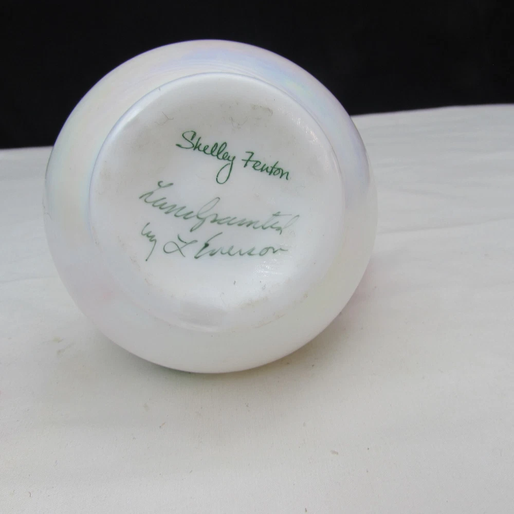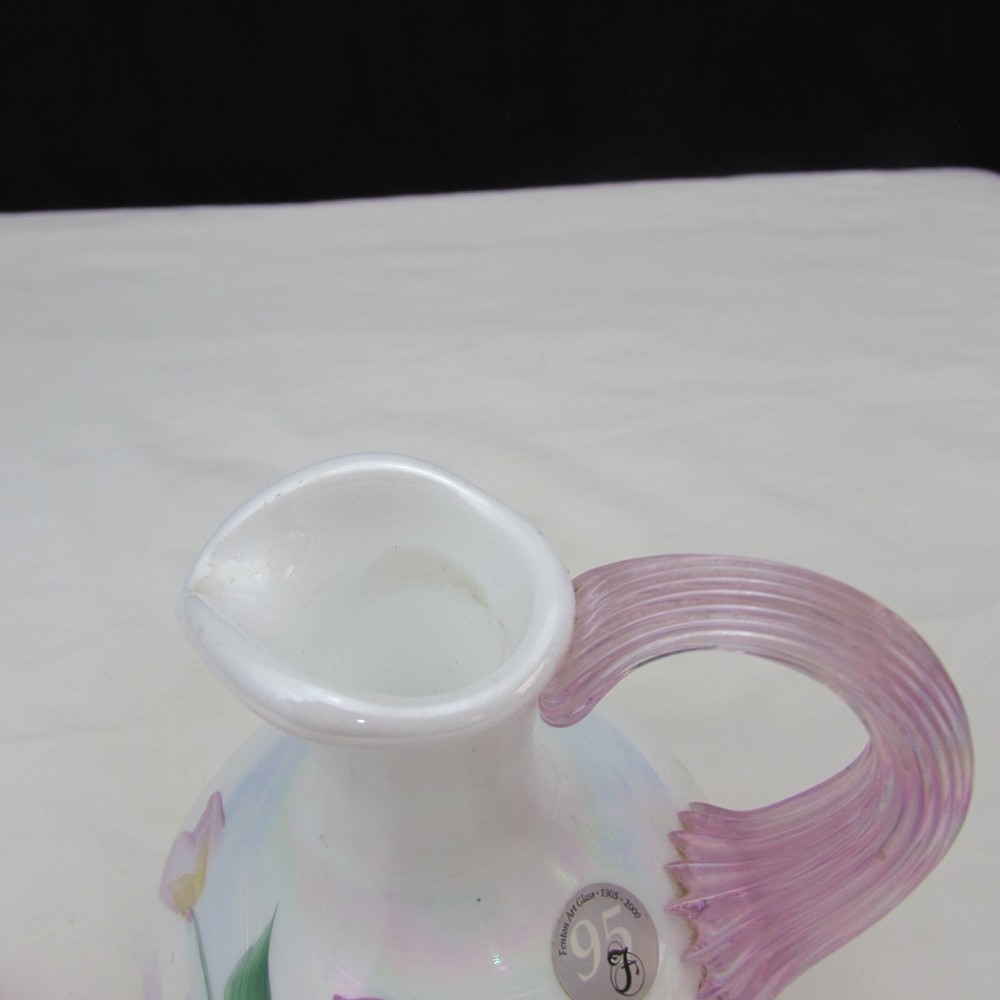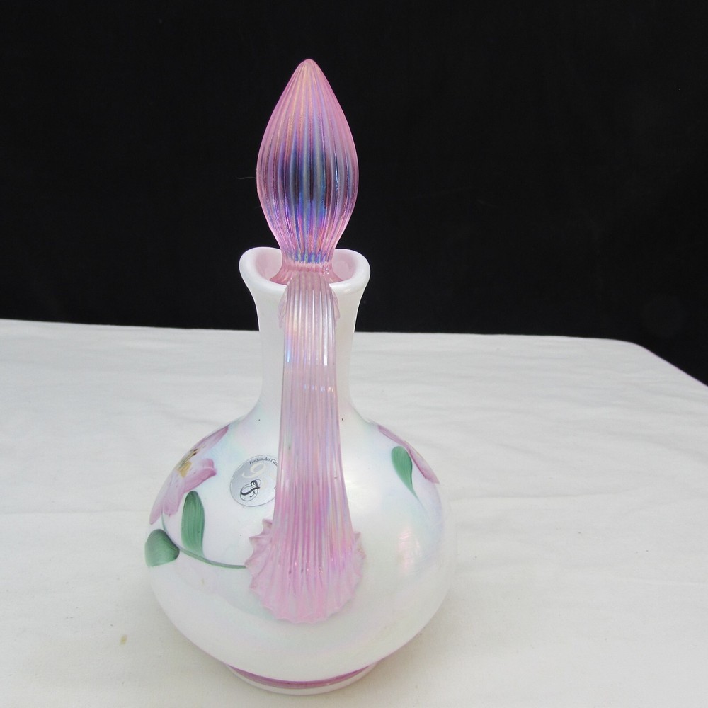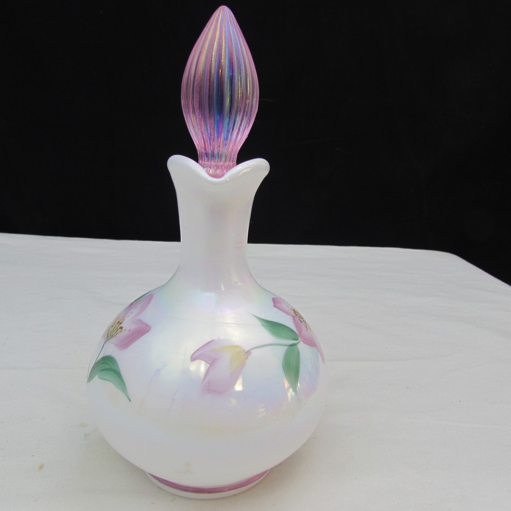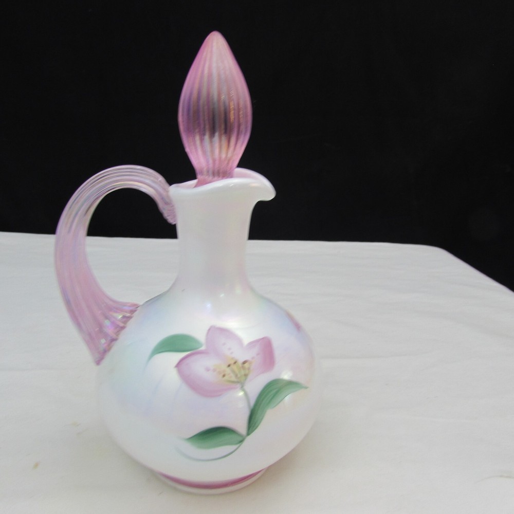 Fenton Milk Glass Iridized Floral HP Cruet Stands 6 1/2 inches tall and 4 inches in diameter Beautifully hand painted on this piece. This piece is marked and signed by the artist. This piece was a Special Order for QVC in 2000. Limited Production on this piece! This gem comes to you in great condition free from any issues with cracks, chips or repairs. Please refer to each picture for overall condition of this piece as they are part of the description. A really nice piece to add to anyone's collection! Make it part of yours today! Please take a moment to look at my other great items up for auction at great prices. I ship priority for insurance and tracking purposes. I ship out no later than next business day after payment is received so you can enjoy your new treasure faster. All items are securely packed so they arrive in great condition. I will combine shipping as long as it does not interfere with the pieces arriving safe and sound. I do try to double box most items. I try to list all defects that I can see and feel however I am no expert so please look over the pictures carefully and if you have any questions please let me know. I strive for 100% satisfaction so if there is any issue with your purchase please contact me first to resolve. Thank you for stopping by and Happy Bidding!!!! PA State Residents will add 6% for State Tax on invoice.