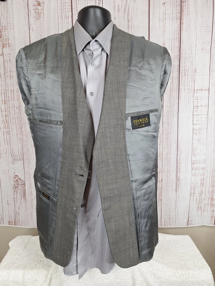 Fenwick Clothes Jacket Blazer Mens 40R Gray Nailhead Ventless Quality used condition. Please check out the measurements before buying to ensure a perfect fit. Shirt Size on Label 40R Shoulder- Hem 30.00'' Shoulder- Shoulder 19.00'' Shoulder- Wrist 24.00'' Armpit- Armpit 21.00'' Top button 20.00'' Everything ships within a day. Feel free to message me with any questions. Thank you very much. 7/18/24