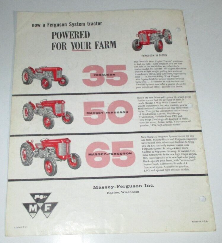 Massey Ferguson MF 65 Diesel Tractor Sales Brochure Literature Advertising Ad