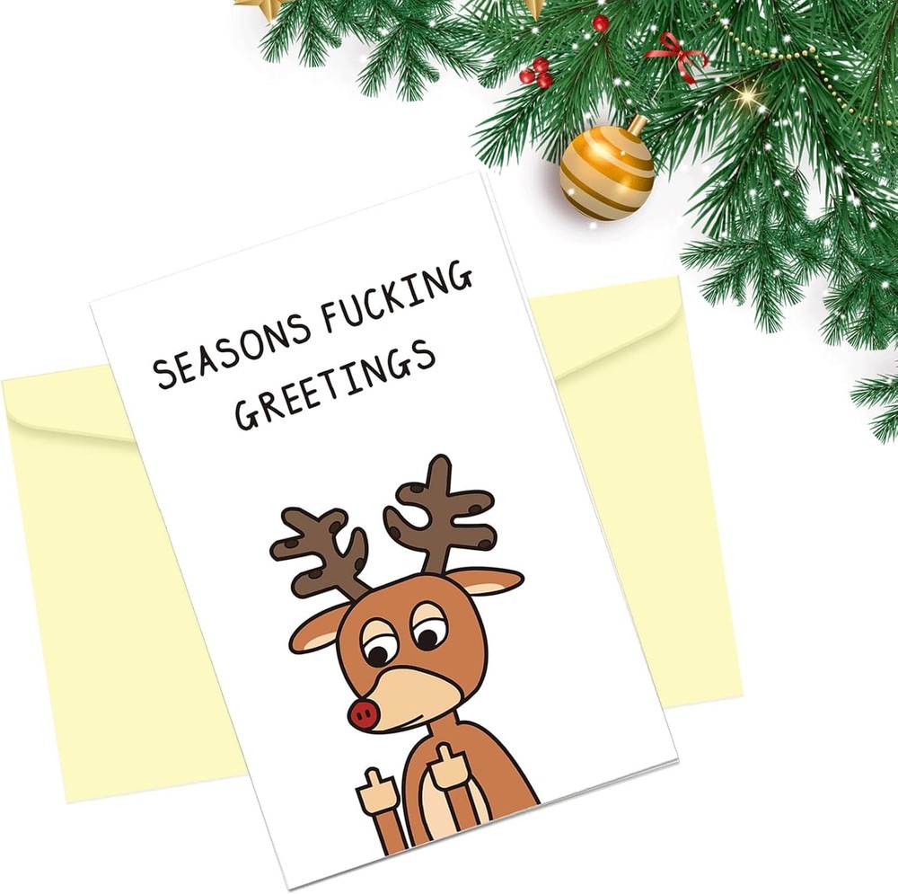 Looking for funny xmas cards to give to your dad, mom, boyfriend, girlfriend, best friend, husband, coworker, or significant other? This humorous Christmas card is just the surprise you've been looking for that will absolutely knock their socks off. We designed these funny Christmas cards for men and women, appropriate for most ages. This holiday card will surely put a smile on their face! Make them laugh with this clever Merry Christmas card. Card measures 8.62 x 5.67 x 0.28 inches. Includes an envelope made of pearlescent papers. Size: 8.62 x 5.67 x 0.28 inches.