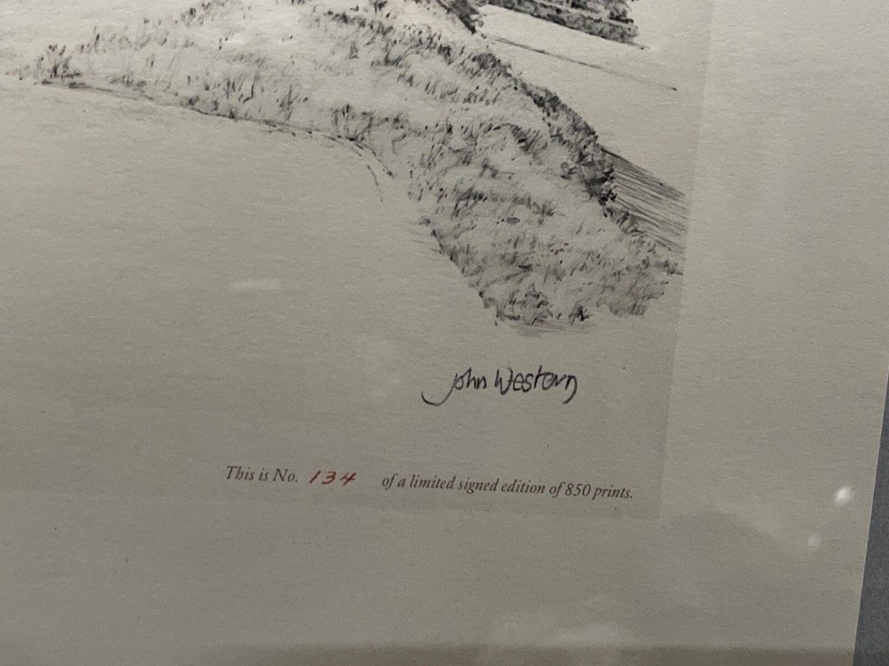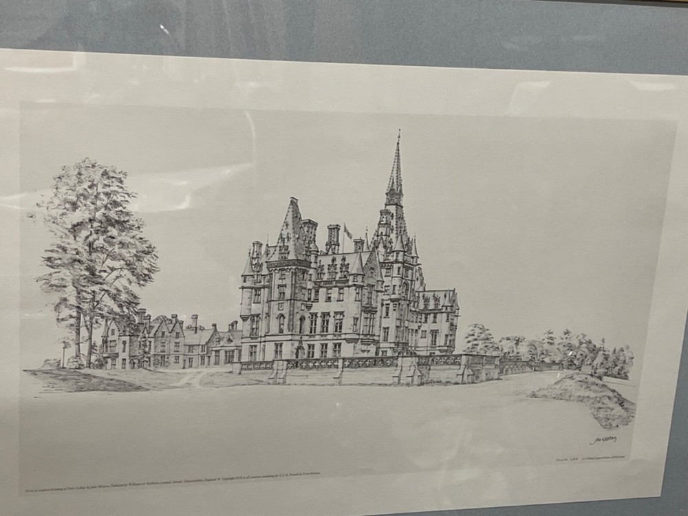 This limited edition print by John Western depicts the stunning Fettes College in Edinburgh. Numbered 134 out of 850, this medium-sized print measures 80cm in length and 59cm in height, with a width of 2cm. The print is nicely mounted and framed in a wood frame with gilt finish. The contemporary artwork, produced in 1978, showcases the architecture and public schools theme, making it a perfect addition to any art collection. The print was produced in the United Kingdom. As photos and condition report Thanks for looking