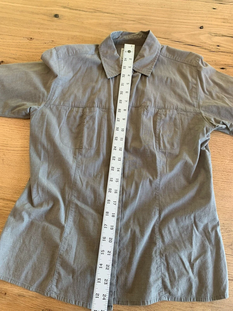 Field Gear 3/4 Sleeve Women’s Cotton Front Pockets Green Button Up Shirt Small Preloved Outdoors Casual Adventure Hiking Walking Camping Ships next day from Corvallis Oregon Smoke free environment Flaws shown in pics of any (very small repaired rip on front right panel)