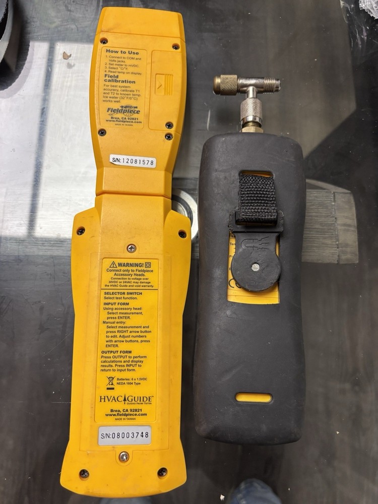 The Fieldpiece HVAC Tool Lot HG1 includes a Superheat Subcooling Calculator specifically designed for use with R22 and R410A refrigerants. This kit, which consists of two units, is a valuable tool for HVAC professionals in the industrial and commercial sectors. The Fieldpiece brand is known for producing high-quality products in the field of HVAC and refrigeration, making this tool lot a reliable choice for those in need of specialized equipment for their projects.
