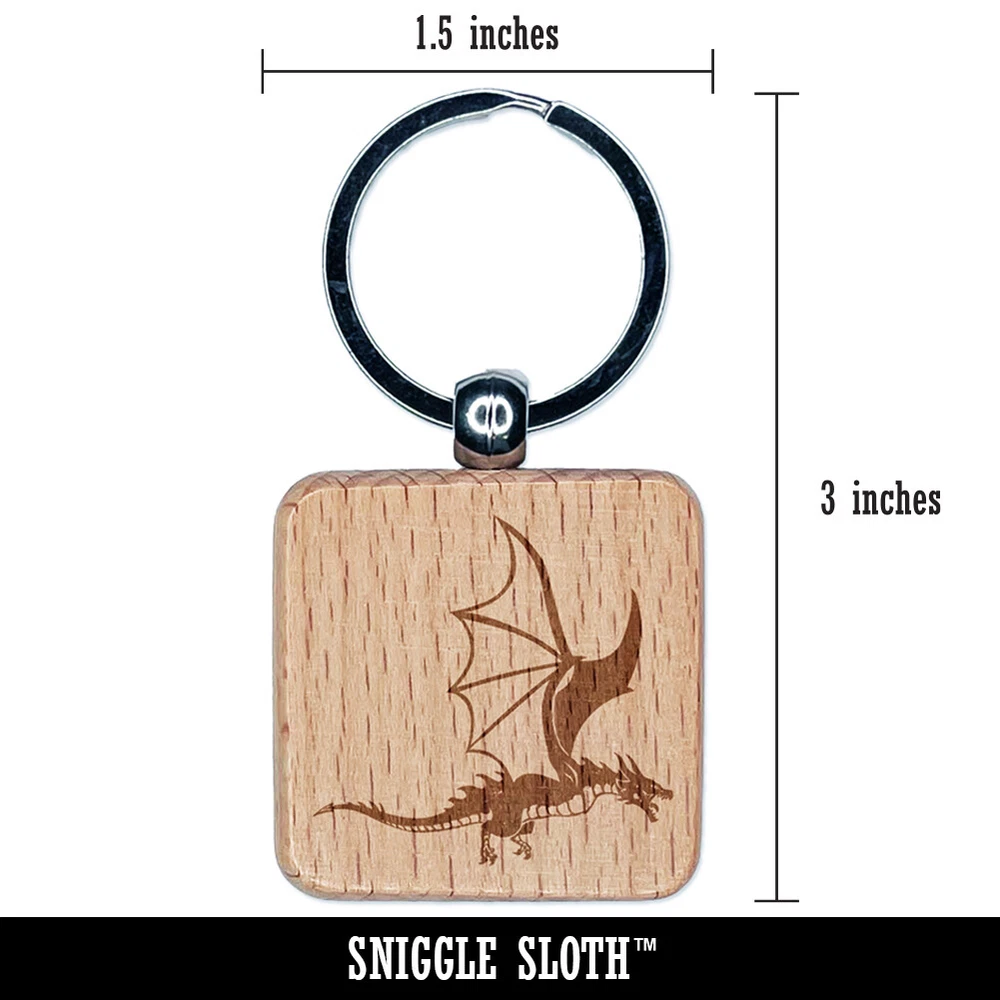 Fierce Flying Dragon Engraved Wood Square Keychain Tag Charm