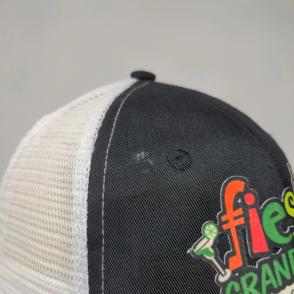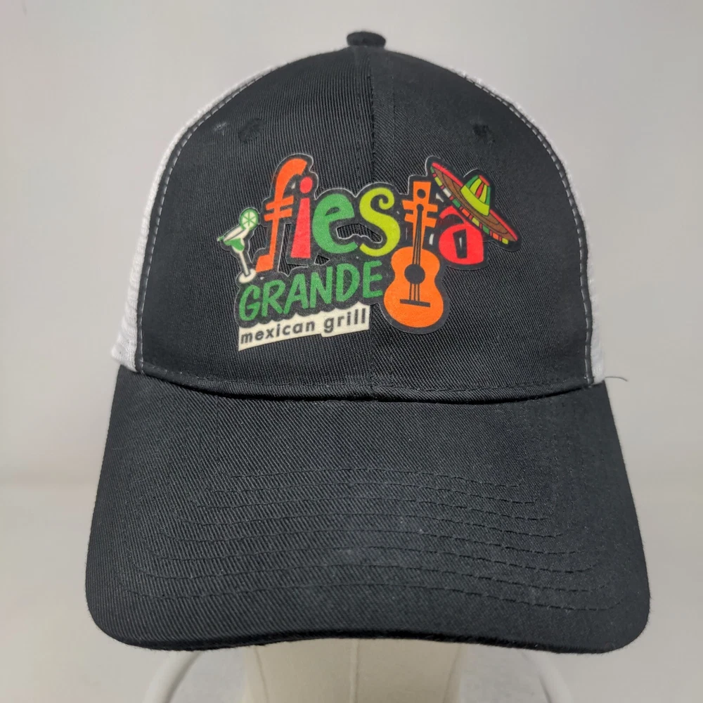 Fiesta Grande Mexican Grill Snapback Hat One Size Black Mesh Back Vent Holes Condition: This Fiesta Grande Hat has blemishes on both inside and outside. Sold as pictured, thanks for looking! - See Multiple Items You Like? We Can Do Bundle Shipping! -We ship items out EVERY BUSINESS DAY so EXPECT a QUICK delivery! -Please feel free to ask any questions you may have we answer most questions instantly! -Thank you for supporting Red Frog Goods! 2.1-10