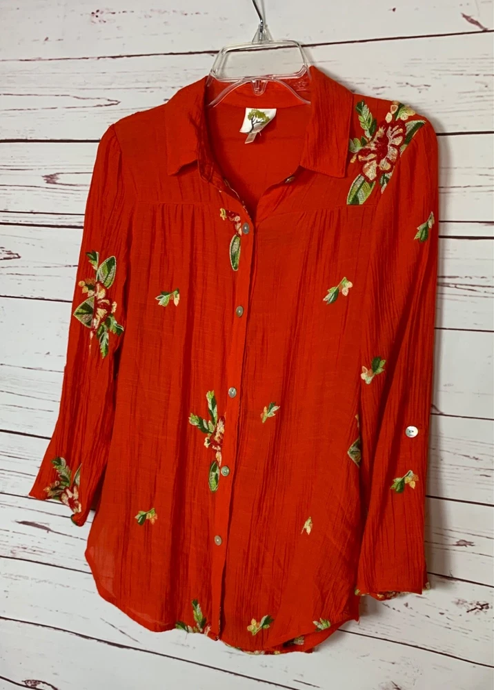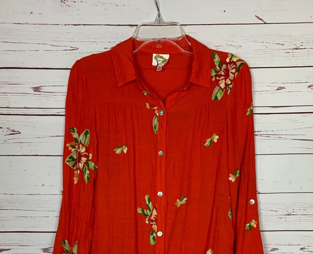 * Fig And Flower Brand * Women's S Small * Excellent Condition * Beautiful Colors & Floral Embroidery * Lightweight & Machine Washable * VERY CUTE Overall Style & Top ~~ When Laying Flat, ~ Underarm to Underarm is About 20 Inches ~ Shoulder to Hem is About 27 Inches