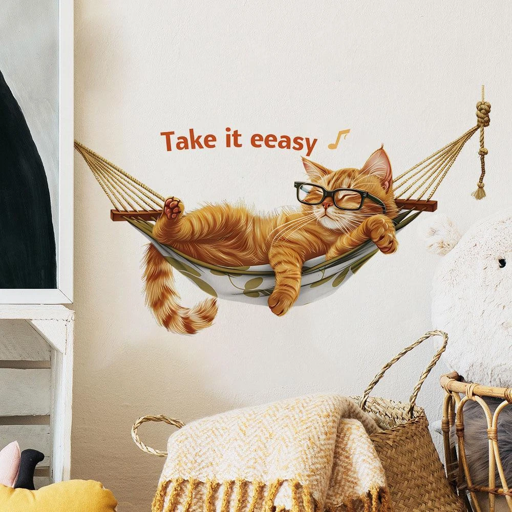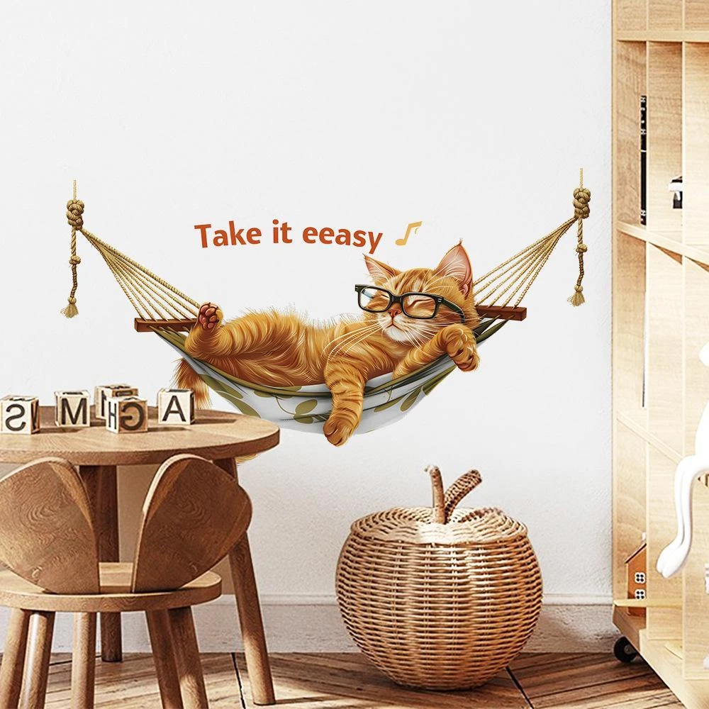 Figurine Animal Cat Plastic Multicolor Modern Wall Mount Small Sticker Decor