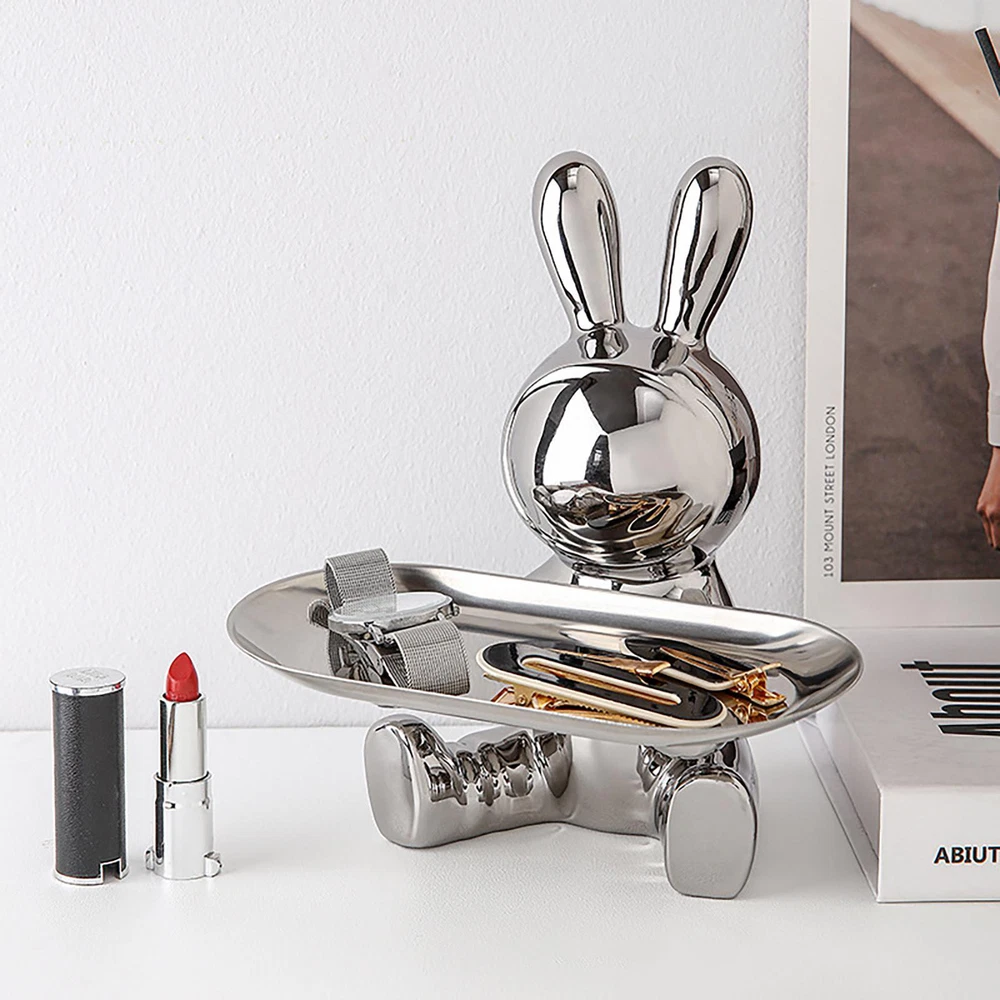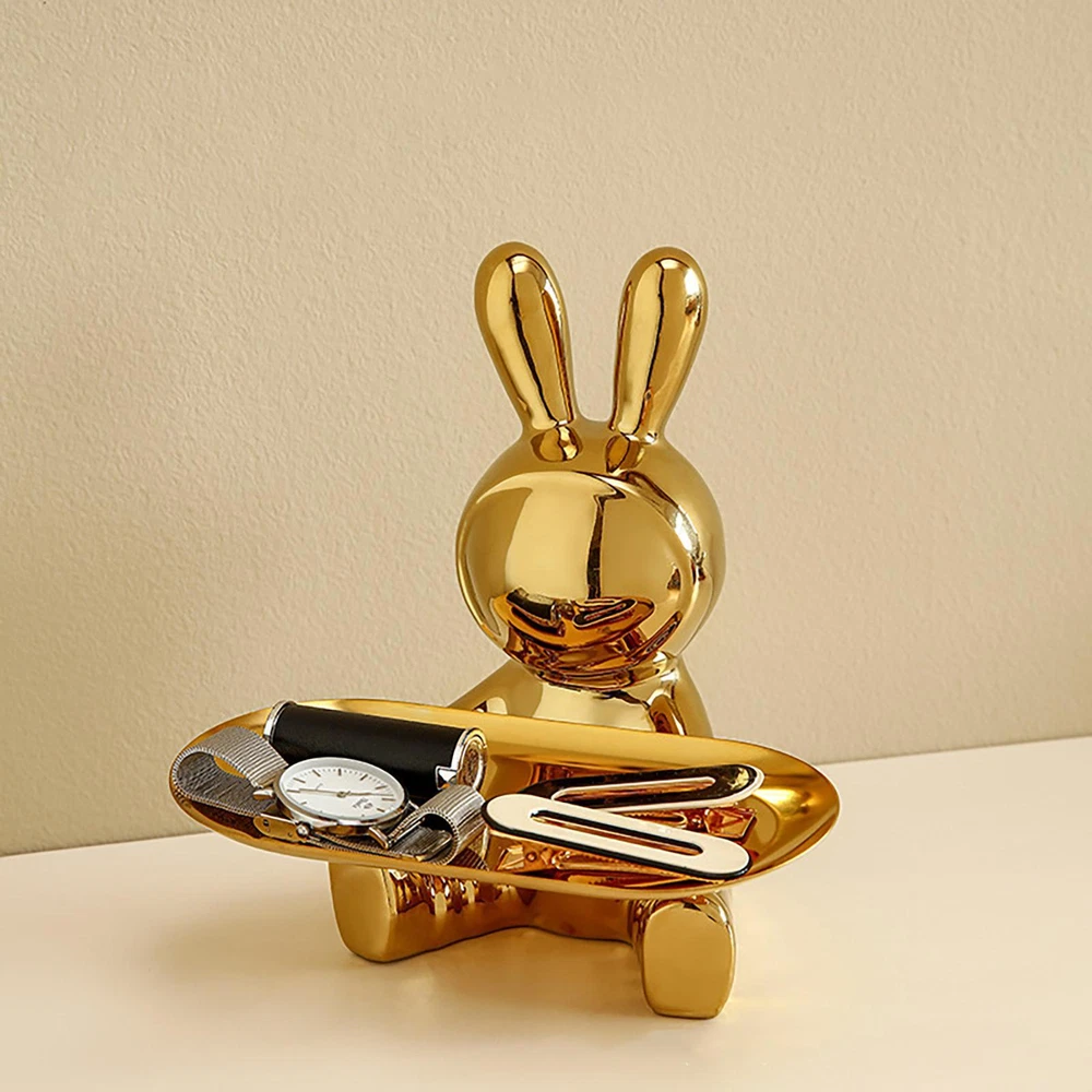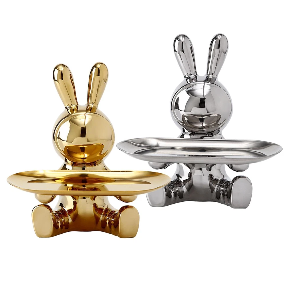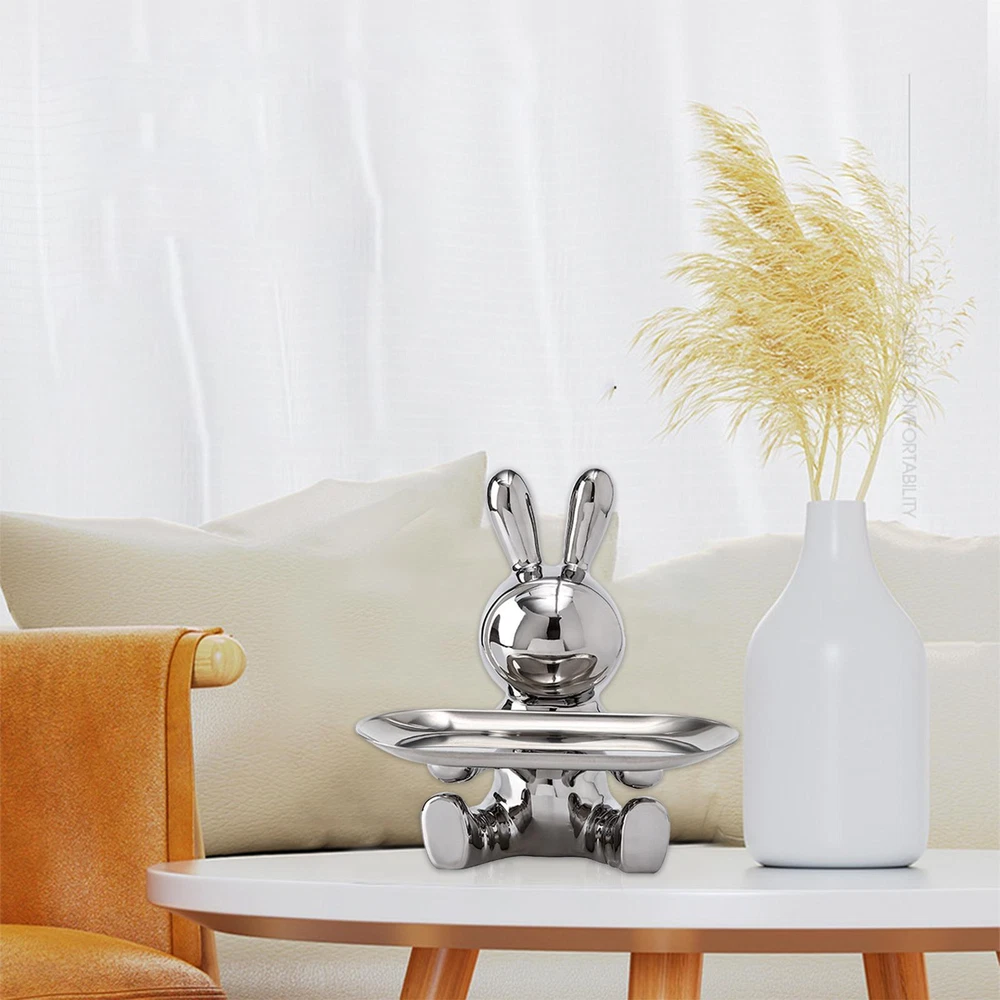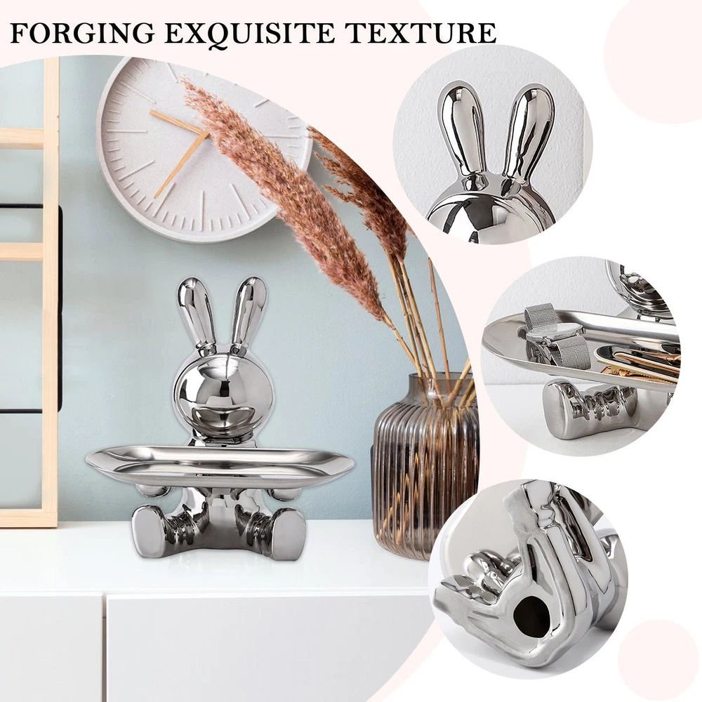 Free and fast shipping , shipping take up 1-7 Business Days 30 Day Return Accepted EASY PAYMENT via PayPal, Credit Card, PayPal Credit, Google Pay... Figurine Animal Rabbit with Tray Resin White Small Modern Carved Free Stand Ceramic Bunny Figurines Organizer Tray Crafts Electroplating Entrance Storage Bunny Statue Christmas Gifts for TV Cabinet Office Feature: 1. High-quality Materials: The rabbit sculpture storage ornaments are made of high-quality ceramic materials, and the surface of the holder is smooth and durable, please rest assured to use. 2. Electroplating Process: Shiny and gorgeous electroplated rabbit decorative ornaments, high value and strong practicability, the rabbit storage tray can be placed in your living room, bedroom, study, bathroom, office, because of its cool appearance, it can be beautifully decorated Decorate your home or office. 3. Multifunctional & Beautiful: Our electroplated rabbit storage tray ornaments can not only be used as home decoration alone, but also can be used to store keys, watches or as a jewelry and cosmetics storage tray on the dressing table, it can also be a candy tray. 4. Perfect Size: The size of the rabbit sculpture is 18x18.5cm/7.08x7.28inch. Perfectly sized to add personality to your living room, dining room, and bedroom without taking up too much space. 5. Great Gift: This rabbit sculpture is not only a home decoration, but also a perfect gift for your family and lovers, the rabbit sculpture can be a perfect gift for Easter, Christmas, Mother's Day, birthday or other special days. Specification: Rabbit Tray Sculpture: Bunny Sculpture Storage Ornament Entrance Key Storage Tray: Rabbit Storage Tray Ornament Style: Modern Style Theme: Animal Color (Optional): Gold, Silver Material: Ceramic Product size: About 18x18.5cm/7.08x7.28inch Packing: Kraft carton + styrofoam Note: Due to the different monitor and light effect, the actual color of the item might be slightly different from the color showed on the pictures. Thank you! Please allow 1-2cm measuring deviation due to manual measurement. 1 x Rabbit Storage Tray Ornament REVIEWS The product came very well packaged. I'm very happy. thank you for everything. Seller strongly recommended. This is great! I definitely recommend! Product looks amazing Delivery was fast. Excellent seller, great communication. I advise everyone to buy it!