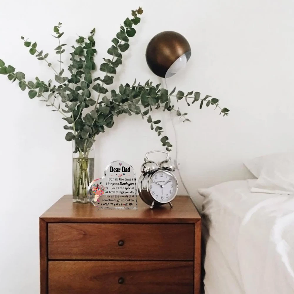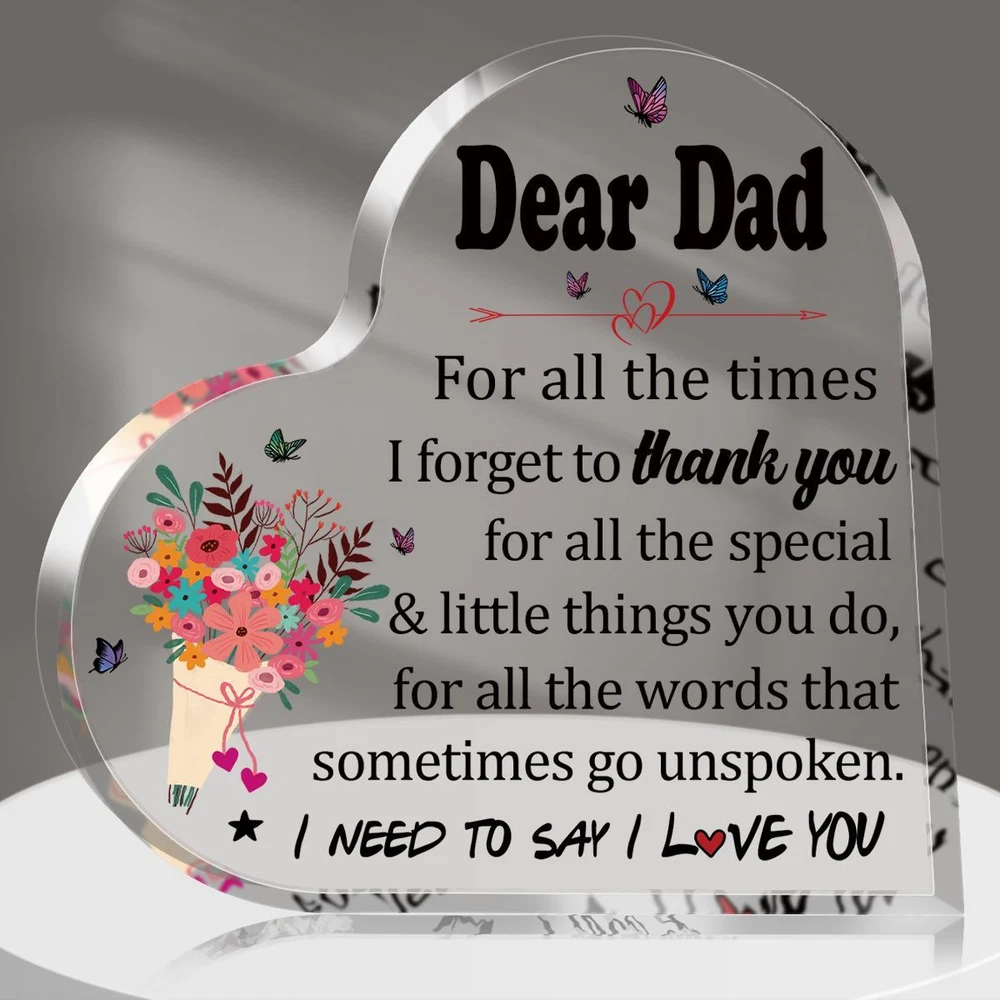 Free and fast shipping , shipping take up 1-7 Business Days 30 Day Return Accepted EASY PAYMENT via PayPal, Credit Card, PayPal Credit, Google Pay... Figurine Gift for Dad Plaque Clear Carved Small Novelty Romantic Home Decor 1PC Heart-shaped Plaque Birthday Gifts for Dad, Acrylic Keepsake Paperweight for Father's Day Thank You Dad Gifts Desk Plaque Sign For Table Decor Material: Acrylic Size: 3.94X3.94inch/ 10x10cm Package: 1PCS Pay attention : 1.There is protective film on product opposite. You need to tear off the film before using. 2. There are difference between the front and back. REVIEWS The product came very well packaged. I'm very happy. thank you for everything. Seller strongly recommended. This is great! I definitely recommend! Product looks amazing Delivery was fast. Excellent seller, great communication. I advise everyone to buy it!