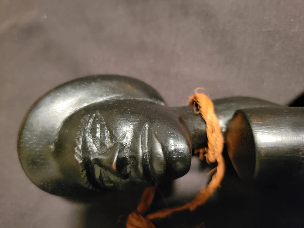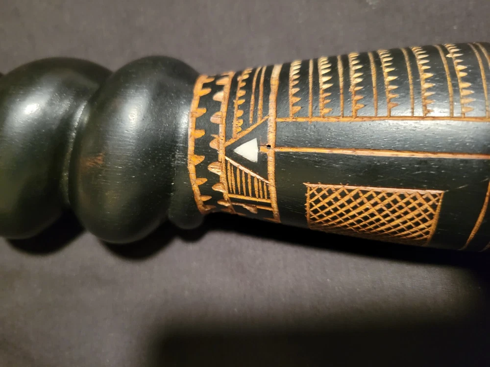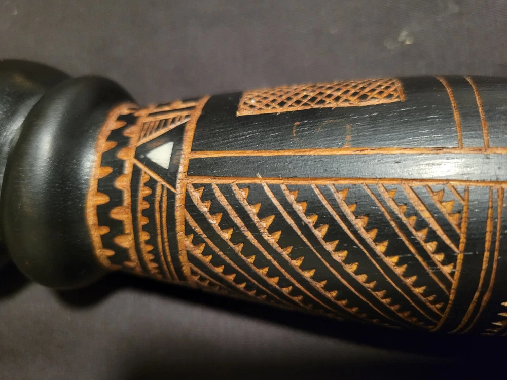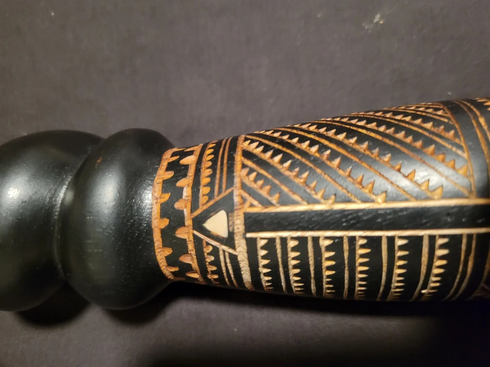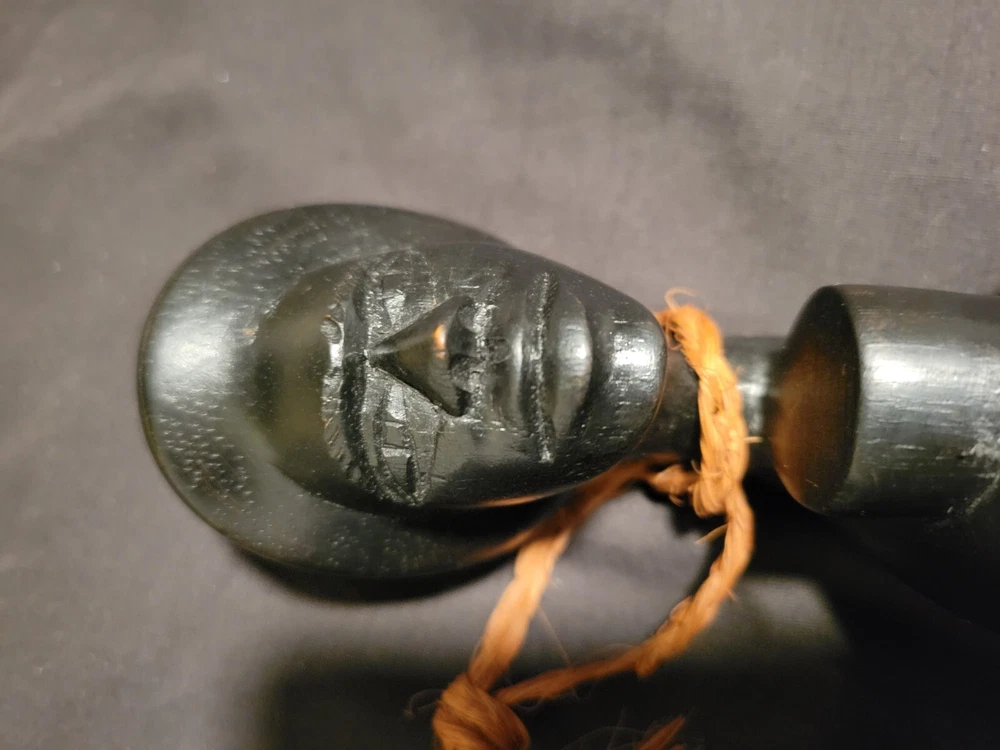 As i was getting ready to leave my room one day i sat down on the end of my bed to put on my shoes and saw the shadow of this object in the floor in front of me. The object is on a shelf againt a wall with no lighting anywhere near it. Just saying... This Fiji Fijian Cannibal Fork is a unique and heavy carved wood collectible. Made in Fiji, this piece represents the Pacific Island culture and is a must-have for collectors. The intricate details and heavy carving make this fork a true work of art. Perfect for those interested in Pacific Island culture, this Fiji Fijian Cannibal Fork is a great addition to any collection. The fork's authenticity and unique design make it a great conversation starter. Add this piece to your collection today and experience the beauty and history of Fiji.