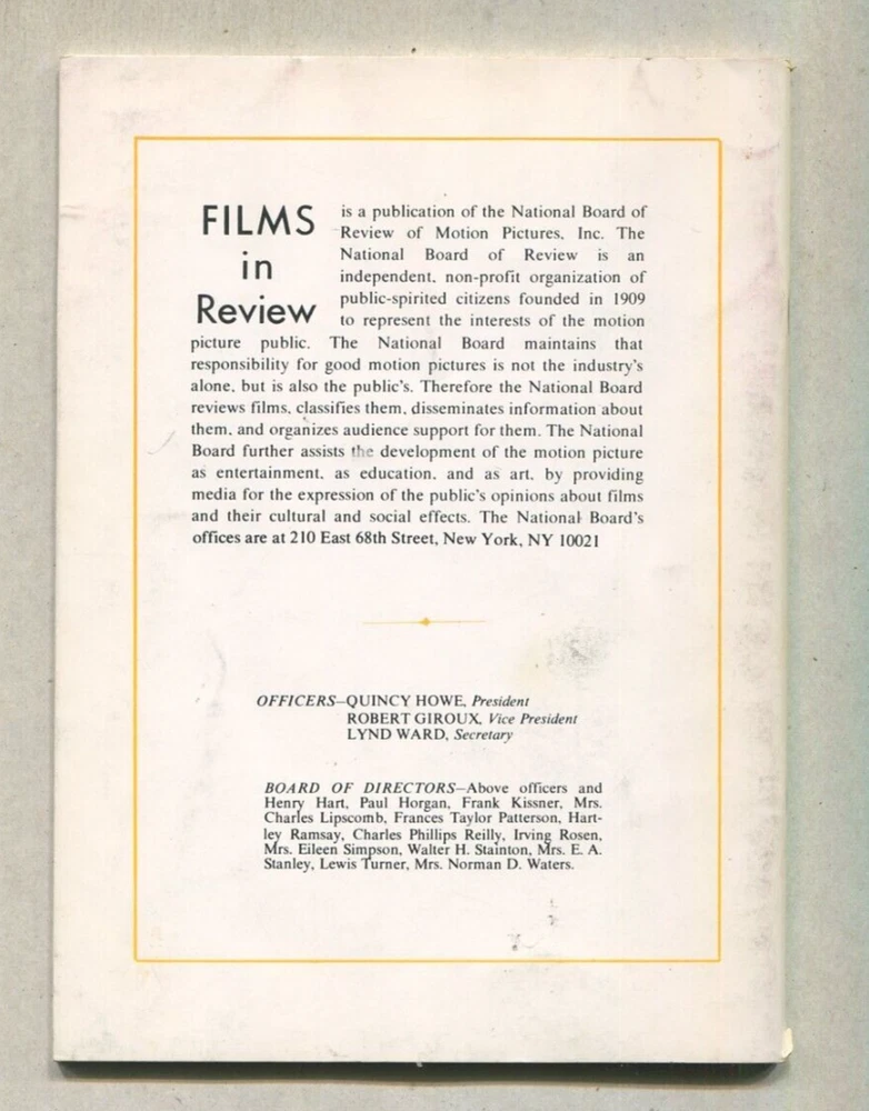 UPC:Does not applyPublication Year:1975Language:EnglishSeller Notes:“very good”Topic:CelebrityPublication Month:JuneCountry/Region of Manufacture:United StatesPublication Name:Films In Reviewgtin13:Does not apply