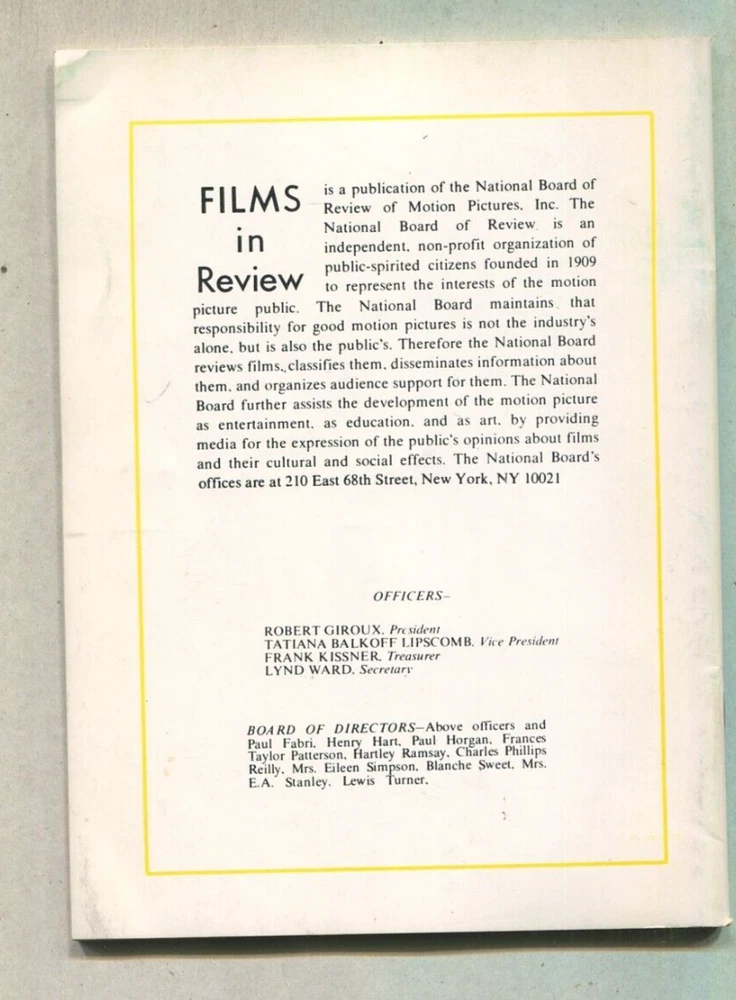 Publication Month:JuneLanguage:Englishgtin13:Does not applyPublication Name:Films In ReviewUPC:Does not applyTopic:CelebrityCountry/Region of Manufacture:United StatesPublication Year:1978Seller Notes:“very good”