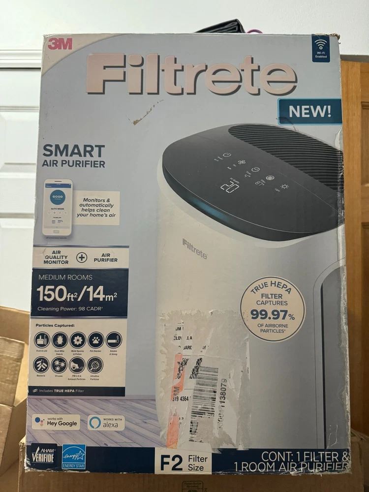 Filtrete Smart Air Purifier & Air Quality Monitor for Large Rooms, up to 310 sqft, Alexa enabled, Wi-Fi Simple Setup, True HEPA Filter for Allergens, Dust, Bacteria, & Viruses, Alexa smart reorders Condition: Open Box We apologize in advance for any variation in box condition that may occur during transit ! All items we carry are stored in a pet-free and smoke-free environment, ensuring their quality and cleanliness DESIGNED WITH AUTO-MODE to clear your air automatically, electronic touch controls, light dimmer and filter life indicator that shows the percentage left on your filter’s life INCLUDES TRUE HEPA filtration out of the box to attract and capture 99.97% of unwanted airborne particles, such as allergens, dust, lint, mold spores, bacteria, viruses and pet dander (as small as 0.3 microns, from the air passing through the filter media. Initial efficiency value) DUAL-STAGE FILTRATION: Includes two washable pre-filters to help capture larger particles. Clean every 30 days to maintain optimal device performance CHANGE FILTER when the device’s filter life indicator reaches 0% (Approximately every 6 months based on 12 hours of run time per day) WORKS WITH F1 Filtrete Filters CLEAN AIR DELIVERY RATE (CADR): 200 BACKED BY 25+ YEARS of filtration expertise Notes: Please check images before offering or purchasing. Thank you for your understanding. If you have any questions or need further information, please don't hesitate to contact us. We're here to assist you :) Shipping and handling times We strive to process and ship all orders within 1 business days of receipt. Please note that during peak periods, there may be a slight delay in processing and shipping times. Once your order has shipped, delivery time will depend on the shipping method you selected at checkout. Estimated delivery times are as follows: Standard shipping: [3-5] business days Expedited shipping: [2-3] business days Next-day shipping: [1-2] business days Please note that these are estimated delivery times and may vary based on the delivery location and other factors beyond our control. We are not responsible for any delays in delivery. Contact us We value your business and are here to help with any questions, comments, or product requests you may have. If you have any special requests or special shipping needs, please don't hesitate to contact us. You can reach out to us through eBay messages directly. We will do our best to accommodate your requests and will respond to your inquiry as soon as possible.