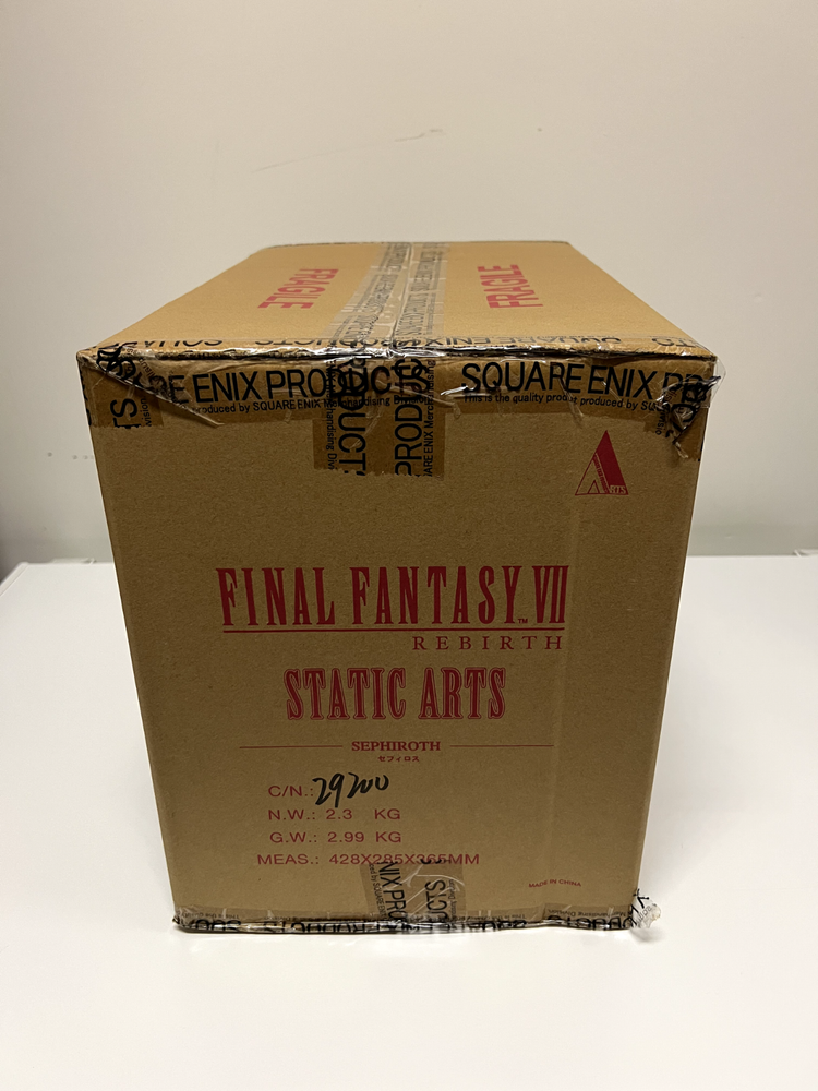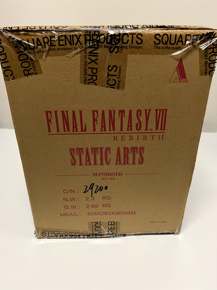 New unopened box of the Final Fantasy VII Rebirth Collectors Edition Static Arts Sephiroth Statue Figure. Does not include the game, statue only. •Approx. 48cm / 19inch statue depicting the iconic antagonist Sephiroth in highly detailed sculpting. The wing can be detached.