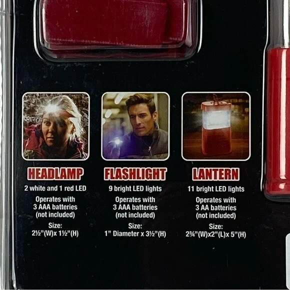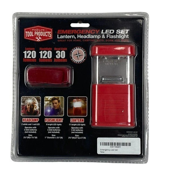 New Fine Life Tool Products Emergency LED Lantern, Headlight, Flashlight Set Batteries not included Lantern 120 Lumens Flashlight 120 Lumens Head light 30 Lumens HH108-1-2