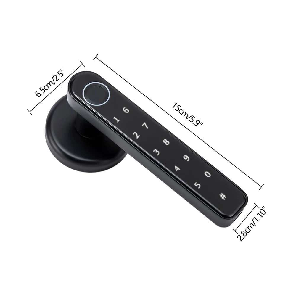 Fingerprint Smart Door Lock Biometric Door Lock Handle Set Smart Lock Front Door Welcome~ Notes:4 * AAA batteries need to be purchased by oneself Description The smart lock can bring a lot of convenience to our life, protect our privacy, and also be the witness of our life. The door lock is made of solid and durable zinc alloy and can be used for a long time. The timeless black look can match many different colors and styles of doors. A variety of powerful functions and high work efficiency can enable you to enter a warm room in a short time, which is a good helper for your life. Key Features High-end Material: The door lock is made of zinc alloy, which is durable, and resistant to rust and corrosion, so it can be used for a long time. Exquisite Workmanship: The door lock is painted to make the surface smoother and the color brighter. It can attract more people’s attention to a certain extent. Multiple Unlocking Methods: There are multiple unlocking methods for this door lock: fingerprint, password, key. You can choose freely according to your needs. Considerate Design: The product is suitable for left and right handed doors so you can install it directly. In addition, when relatives and friends visit and you are not at home, you can also set a temporary password through the app to prevent them from waiting for a long time. Large Capacity: The door lock can store up to 50 sets of fingerprints and 100 sets of passwords. Such a large capacity allows the door lock to be widely used in a variety of different scenarios. High Efficiency: The door lock adopts semiconductor fingerprint unlocking and AI artificial intelligence algorithm, which can automatically perceive and quickly identify fingerprints, allowing you to open the door within 0.5 seconds, so you don't need to wait for a long time. Good Security Performance: The door lock is designed with an anti-peep touch screen and virtual password, so you can enter a random password before and after the correct password. In addition, when the password is entered incorrectly, the product will have an alarm function, which can better protect your security and privacy. Powerful Functions: The door lock is equipped with a mute mode, and you can adjust the volume to ensure that you will not disturb others when you go home at night. At the same time, if you need to open the door frequently, you can set the always-open model, so you don’t have to press your fingerprint every time. APP Intelligent Management: You can manage the door lock through an app, such as door lock logs, deleting and adding users, setting volume, alarm functions, etc. This provides you with more convenience. Strong Endurance: The four 2200mAH batteries can be used about 8000-10000 times, and has a low battery warning function to remind you. When powered off, you can also use the charging bank for emergency charging or the mechanical key, so that you can use it without worry. Simple Installation: The package of the door lock includes all the accessories required for installation, and we also provide a detailed manual, so you can install it only according to the steps in the manual. Easy to Clean: The door lock has a smooth surface and a small size, so you can clean it without spending much effort. After a period of use, you only need to use a towel for cleaning. Ideal Gift: The door lock has powerful functions, a beautiful appearance, and high efficiency. It can be used as a gift for a housewarming. You can also give it to friends and family so that they can enjoy more convenience. Quality Service: We stand behind all our guests and look forward to assisting you with your purchase. It is our pleasure to answer your confusion and questions. So please feel free to contact us if you have any problems. Details Round Corners: The corner of the door lock is round. Compared with the traditional square corners, it can better protect your safety and prevent your skin from being scratched. HD Display: When you enter the room, touch the hidden password keyboard, and the digital display will light up. This clear digital display can help you enter the password correctly and quickly. Application This fingerprint lock is designed to fit US standard doors. It is suitable for the door with a thickness of 1-3/8 inches (35mm) to 2-3/16 inches (55mm). This product can be widely used in wooden doors, homes, closets, interior doors, hotels, bedrooms, studies, offices, apartment buildings, etc. How to Add a Fingerprint A: Add users for the first time: 1. Press the setting key and the blue light flashes. 2. Press your finger 5 times until the green light is always on. 3. Successful entry and automatic exit. B: Add users for the second time. 1. Press the setting key. 2. The blue light flashes. 3. Verify the administrator once. (The first three fingerprint users of the door lock are administrators, and the fourth and subsequent fingerprints are ordinary users.) 4. The verification is successful and the blue light is always on. 5. Enter a new fingerprint, press your finger five times, and the green light is always on, indicating success. How to Delete a Fingerprint 1. Press and hold the setting key for 9 seconds. 2. The blue light flashes, and the red light flashes after 9 seconds. 3. Release your hand, and the green light indicates that the factory reset is successful. Specification Color: Black Material: Zinc Alloy Surface Treatment: Painting Style: Modern Shape: Rectangular Control Method: Touch Lock Type: Keypad Lock Capacity: 50 Sets of Fingerprints and 100 Sets of Passwords Power Supply: 4*AAA Batteries(Included) Capacity of Battery: 2200mAH Service Life of Battery: 8000-10000 Times Charge Port: USB Suitable Door Thickness: 1-3/8 inches (35mm) to 2-3/16 inches (55mm) Net Weight: 0.8kg/1.7lbs Gross Weight: 1kg/2.2lbs Product Size: 15.00cm*6.50cm*6.50cm/5.9*2.5*2.5inch Package Size: 21.8*17.8*7.3cm/8.58*7.01*2.87inch Package Included 2* Door Locks 1* English Manual 2* Keys All Accessories for Install