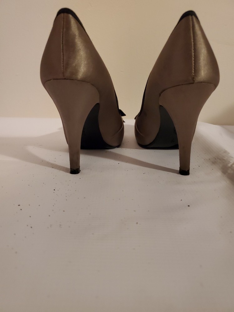 Prada Metallic Silver Black Bow Pump Heels Size US 9 EU 39