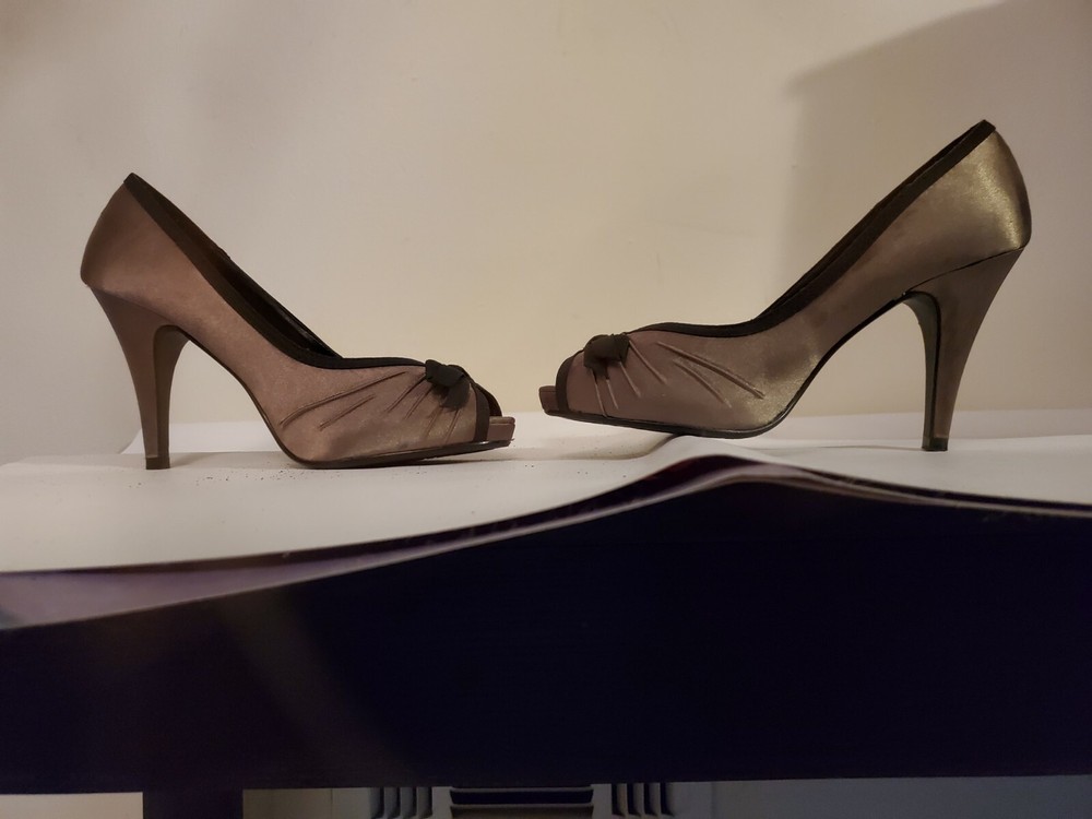 Fioni heels, Blush with black bow and black trim 7.