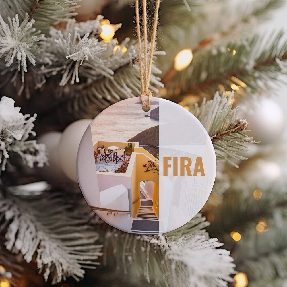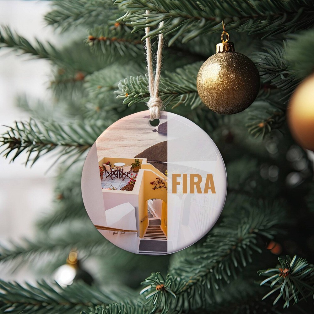 Fira Ornament Christmas Ornament Fira Gift Christmas Gift Fira Christmas Fira Fira Travel Christmas Travel Christmas Decor Material: Ceramic Color: White Shapes: Circle, star, heart and oval Can be printed on both sides Imprint full-color artwork, photos, or logos Hole for hanging string and hanging string included Printed in the USA