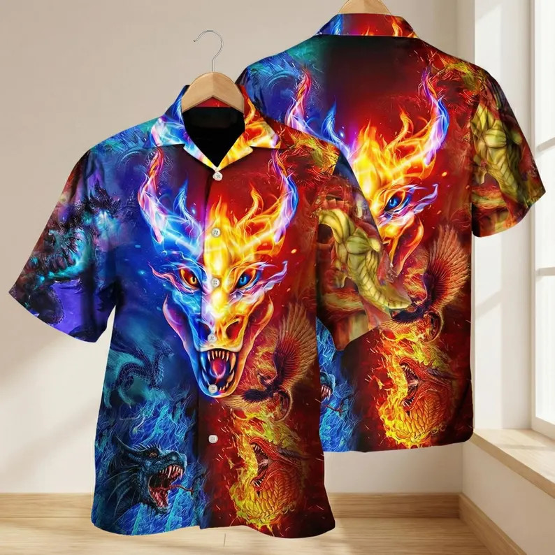 $ 8.56Fire Ice Dragon Hawaii Shirt Aloha Fantasy Beach Vacation Men Women Gift