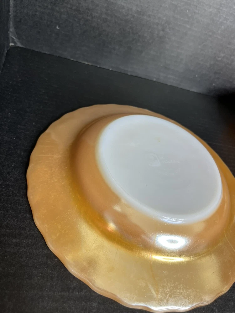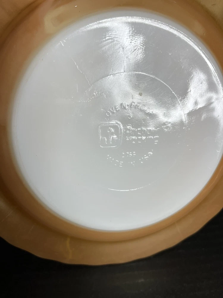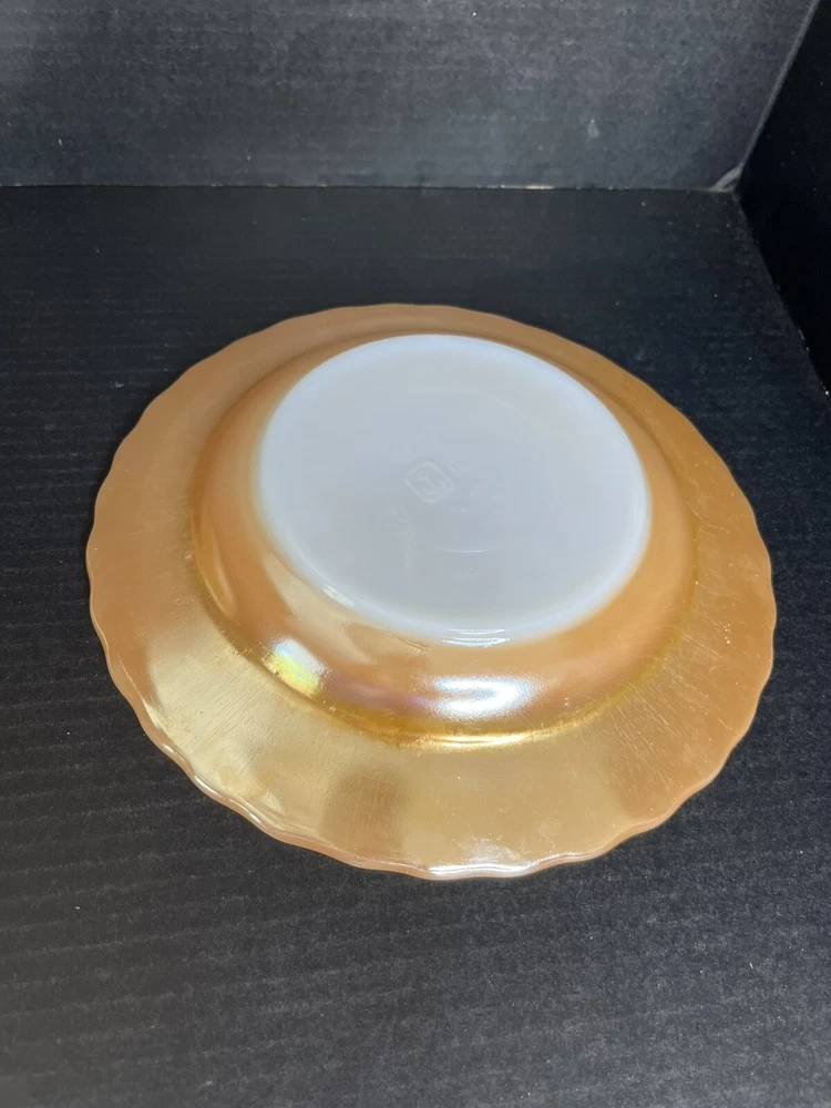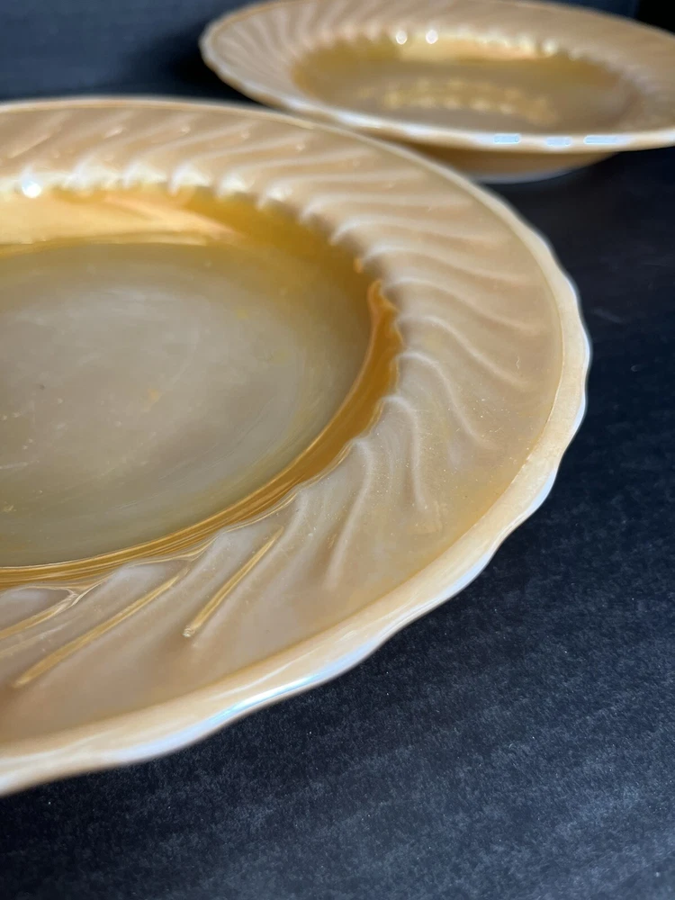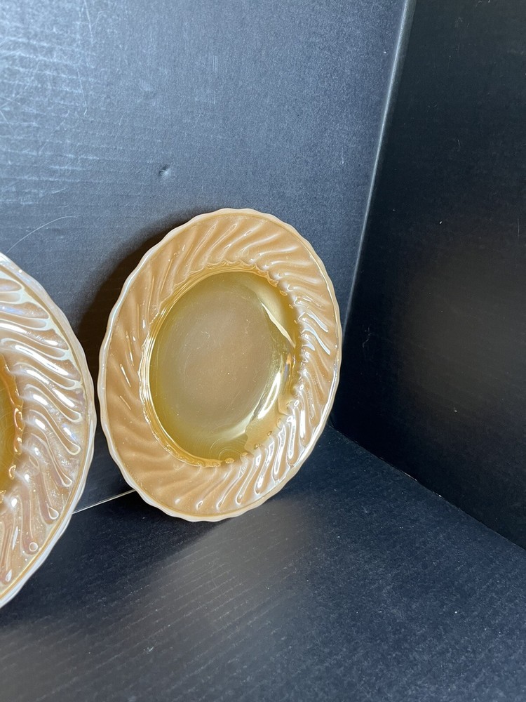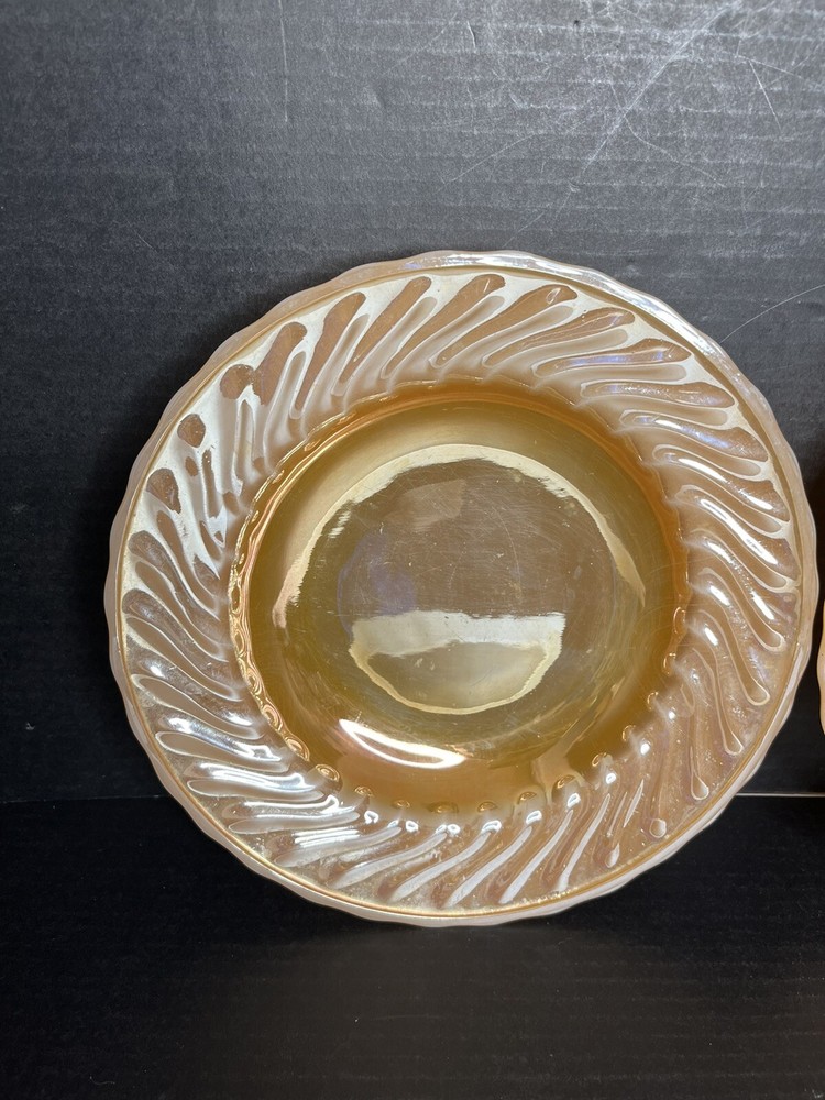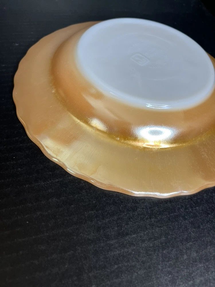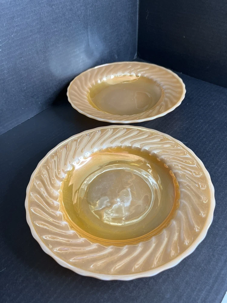 Anchor Hocking Fire King Oven Proof Peach Lusterware Swirl Soup Bowl x 2 9 inch diameter Good Condition - no chips or cracks - some wear from normal use - see pictures for details Please contact me with any questions questions