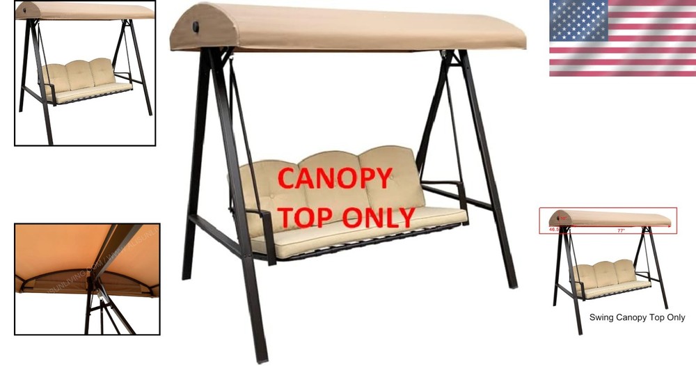 Fire-Retardant Canopy Top for Metal Patio Swing | Durable Polyester | 10"H ‹ › ‹ › ‹ › ‹ › ‹ › ‹ › ‹ › Fire-Retardant Canopy Top for Metal Patio Swing Durable Polyester | 10"H Key Features: Replacement Canopy Top: Custom-fit for the metal outdoor swing, model #GSS00132D (accommodates 3 people). Compatible with Item Numbers: 1001868823, 1007945595, 207207255, and 321080929. Tested Material: Crafted from CPAI-84 U.S. standard fire-retardant fabric, UV-protected, and water-repellent (not waterproof), constructed from 100% polyester. Smart Design: Features strategically placed drain holes on the canopy to prevent water accumulation, ensuring longevity and durability. Dimensions: 77" (L) x 46.5" (W); Curved roof height: 10". Important Note: Includes canopy top only; frame and cushions are not included. Why Choose Our Canopy Top? Enhance your outdoor sanctuary with our Fire-Retardant Canopy Top, designed with your safety and comfort in mind. Made from durable, tested polyester, this canopy top will not only protect you against harmful UV rays but also resist the elements, making it the ideal companion for your patio swing. With a smart design featuring drain holes, you’ll no longer have to worry about stagnant water ruining your outdoor enjoyment. Available in an elegant khaki color, this canopy top elevates the aesthetic appeal of your outdoor space. Ensure your model compatibility and elevate your relaxation today with our high-quality canopy replacement – a luxurious addition to your patio set! Shipping Free & Fast Shipping - We offer free shipping to most of the USA with a normal delivery time of 3-7 days. However, due to the current situation, additional delivery time (up to 3 weeks) may be required for some items. Alternative Carriers - We may use alternative carriers (e.g. USPS, FedEx, UPS, etc.) to ensure your package arrives safely and on time. Due to the use of multiple carriers, we are unable to provide a tracking number automatically. Handling Time - Orders are processed and shipped within 1-2 business days of receiving cleared payment. Shipping Restrictions - Shipping to Alaska, Hawaii, Puerto Rico, Guam, and other US territories may incur shipping charges or delivery restrictions. Please contact us before ordering, or your order can be refunded/cancelled. State Restrictions - There may be restrictions based on your state of purchase. For example, certain items may not be shipped to California due to state regulations. Contact for Tracking Updates - If you require tracking updates or have any concerns about the delivery of your order, please feel free to contact us, and we will be happy to assist you. Return 30-Day Hassle-Free Returns - We want you to be completely satisfied with your purchase. If you are not, you can return the item within 30 days of receiving it for a full refund or exchange. Easy Return Process - To start a return, simply contact us and we will provide you with a prepaid return shipping label and detailed instructions. Restocking Fee - There are no restocking fees for returns. However, the buyer is responsible for return shipping costs if the return is not due to a seller's error. Refund Processing Time - Refunds will be processed within 5 business days of receiving the returned item in its condition. Payment We accept all major credit cards, PayPal, and Apple Pay for your convenience. Your payment information is secure and encrypted to ensure a safe and seamless transaction. Please complete your payment within 3 days of purchase to avoid any delays in shipping. Feedback Your feedback is extremely important to us. We strive to provide the best products and customer service possible. If you are satisfied with your purchase, please take a moment to leave us a positive review. If you have any concerns or issues with your order, please contact us before leaving negative feedback. We are committed to resolving any problems and ensuring your satisfaction. Contact Us If you have any questions or concerns, please feel free to out to our customer support team. You can contact us through the eBay messaging system. We are available Monday to Friday, 9:00 am to 5:00 pm EST, and we will do our best to respond to your inquiry within 24 hours. Buy it now and enjoy a pleasant shopping experience! Unit Quantity: 1 Set Includes: Canopy,Canopy top Material: Metal Features: UV Protected,Water Repellent,Fire Retardant,Drain Holes Required Tools: None Type: Canopy Top Color: Khaki Item Height: Patio Swing Canopy Replacement Item Length: Patio Swing Canopy Replacement Item Width: Patio Swing Canopy Replacement Style: Modern Item Weight: 5 lb Seating Capacity: Up to 3 Seat Depth: 46.5 in Maximum Weight Capacity: 150 lb Finish: Smooth Number of Items in Set: One-Piece Distance from Floor to Bottom: 10 in