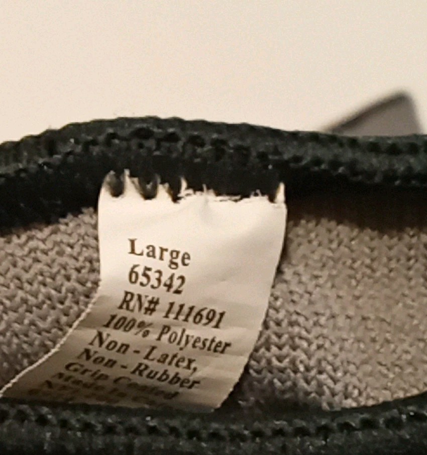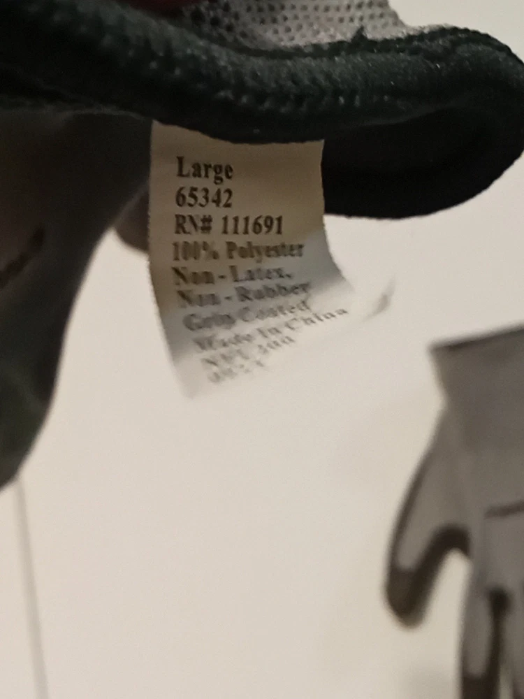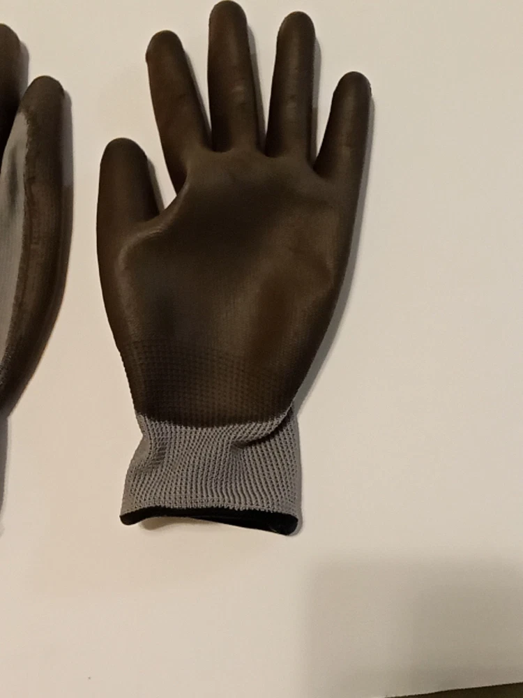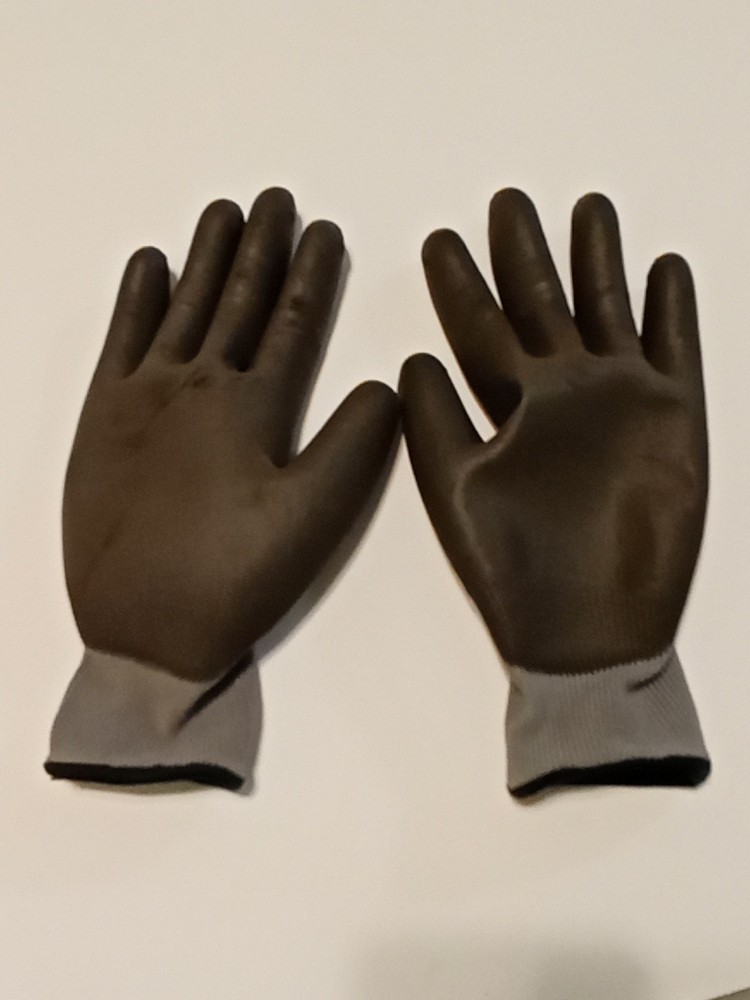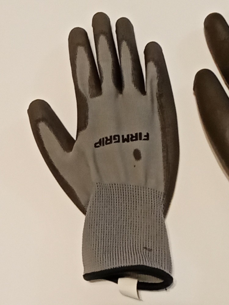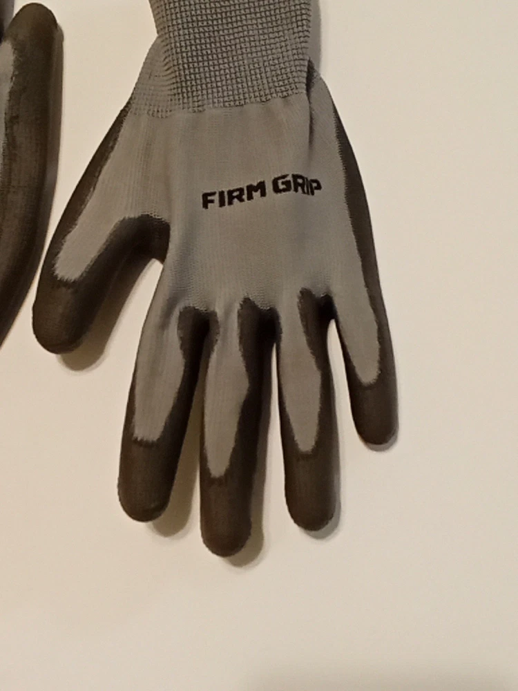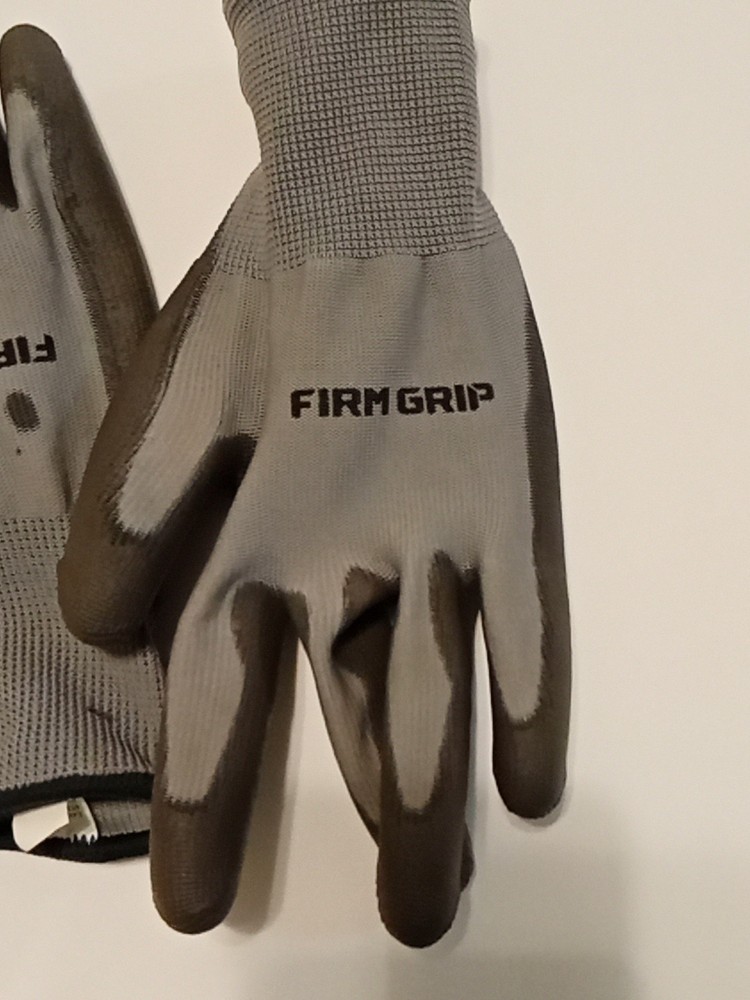 Large Firm Grip Gloves-Lightly Used-Washed-polyester-Grip Coat- No Latex/Rubber. Condition is Used. Shipped with USPS First Class Mail Large Envelope.