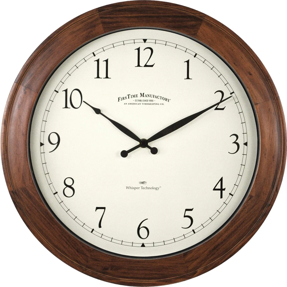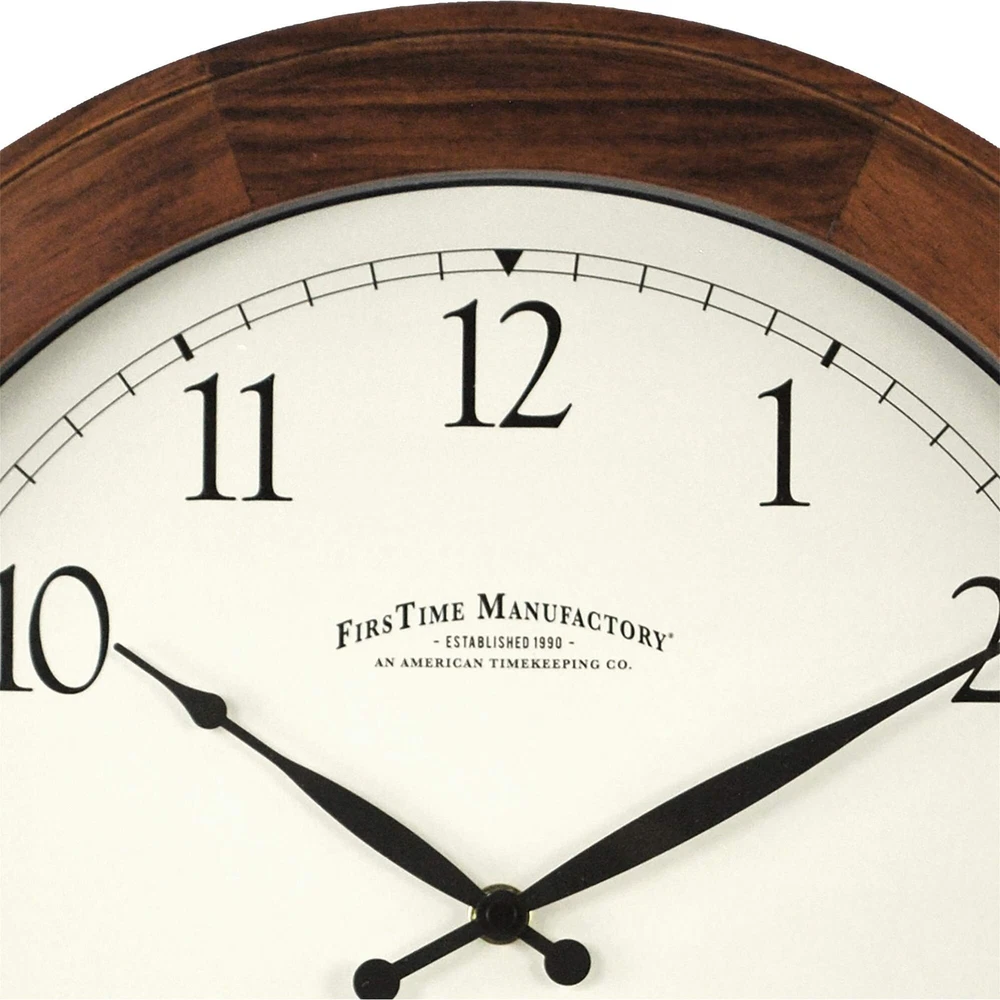 Nothing ties a room together better than a great clock, and the you choose to place in your home should reflect your personality and style. We hear you. Our FirsTime & Co. Brown Garrison Whisper Wall Clock will bring a timeless and classic appeal to any home or office. Crafted of solid wood with a brown stained finish, this elegant timepiece has a 16 inch diameter with black hands and numerals, making it a small yet stylish piece. For fans of silent clocks, this wall clock features our Whisper Technology to ensure there is no audible ticking sound. Finding the right clock to suit your style has never been easier thanks to our wide range of FirsTime & Co. timekeeping solutions. SIZE MATTERS – Our FirsTime & Co. Brown Garrison Whisper Wall Clock has a 16” diameter and 2” depth, making it a great size for any space. IT'S IN THE DETAILS - This round clock is crafted of solid wood with a glass lens, ivory face, black hands and numerals, and a brown stained finish. It also features our Whisper Technology, so there is no audible ticking sound. HANG IN THERE – This clock is designed to be hung on the wall. Hanging hardware is not included. START IT UP – This clock requires 1 AA battery for operation, not included. TRADITIONAL STYLE - Whether moving into a new home or looking for a gift, make an accent statement in your entryway, kitchen, living room or bathroom with a stylish and decorative traditional piece from FirsTime & Co.