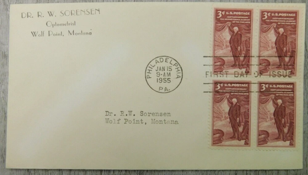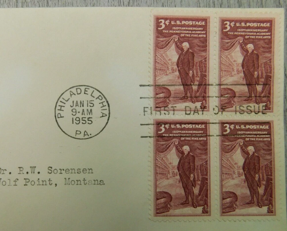 First Day Issue Pennsylvania Academy of Fine Arts PA 1955 Stamp Envelope Cover