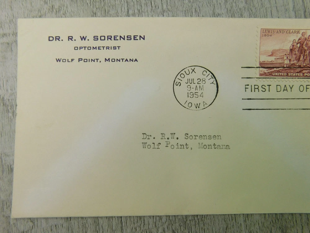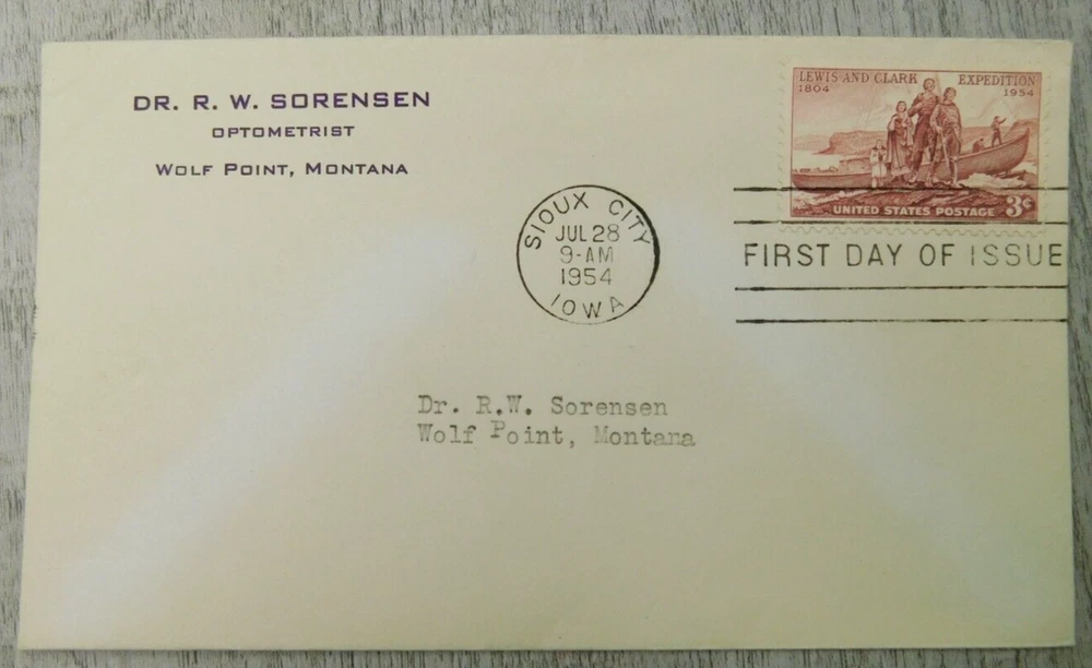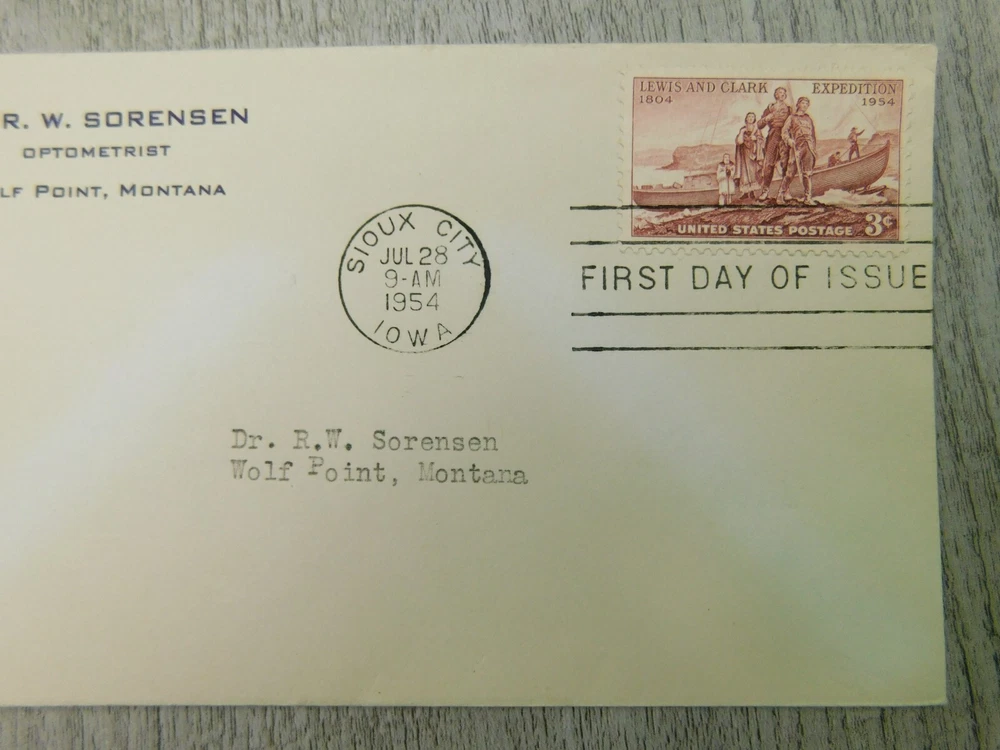 First Day Of Issue Sioux City IA 1954 Lewis & Clark Vintage Stamp Envelope Cover Please see photos for details and condition. We welcome your correspondence so please feel free to message us with any additional questions. We do combine shipping on most of our listings so please see our other items and ask for an invoice prior to checking out so we can do this for you! Thank you, Finicky Fox Collectables LLC