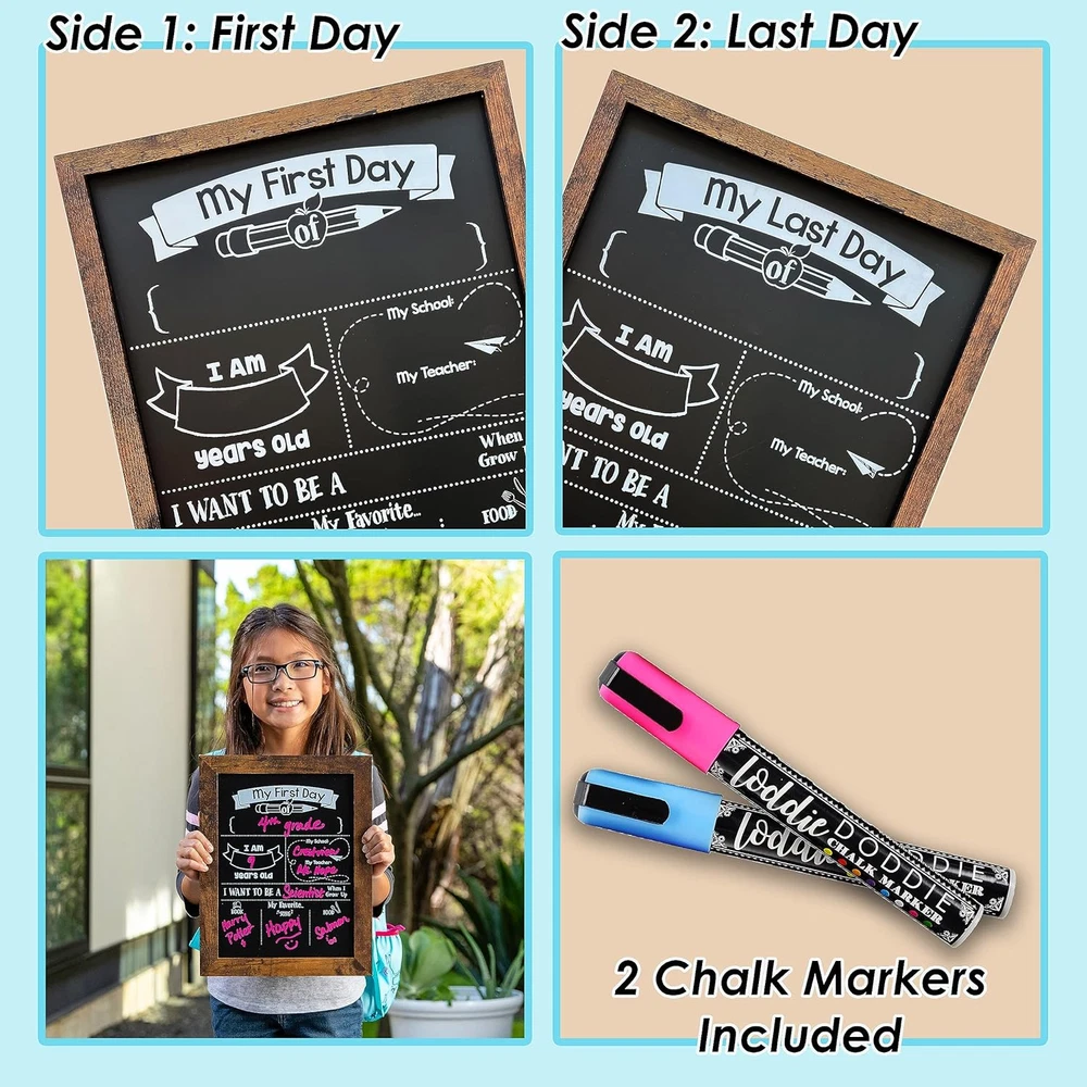 First/ Last Day of School Board and Chalk Markers, 14” X 11” Double Sided Rustic