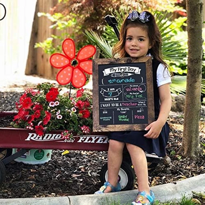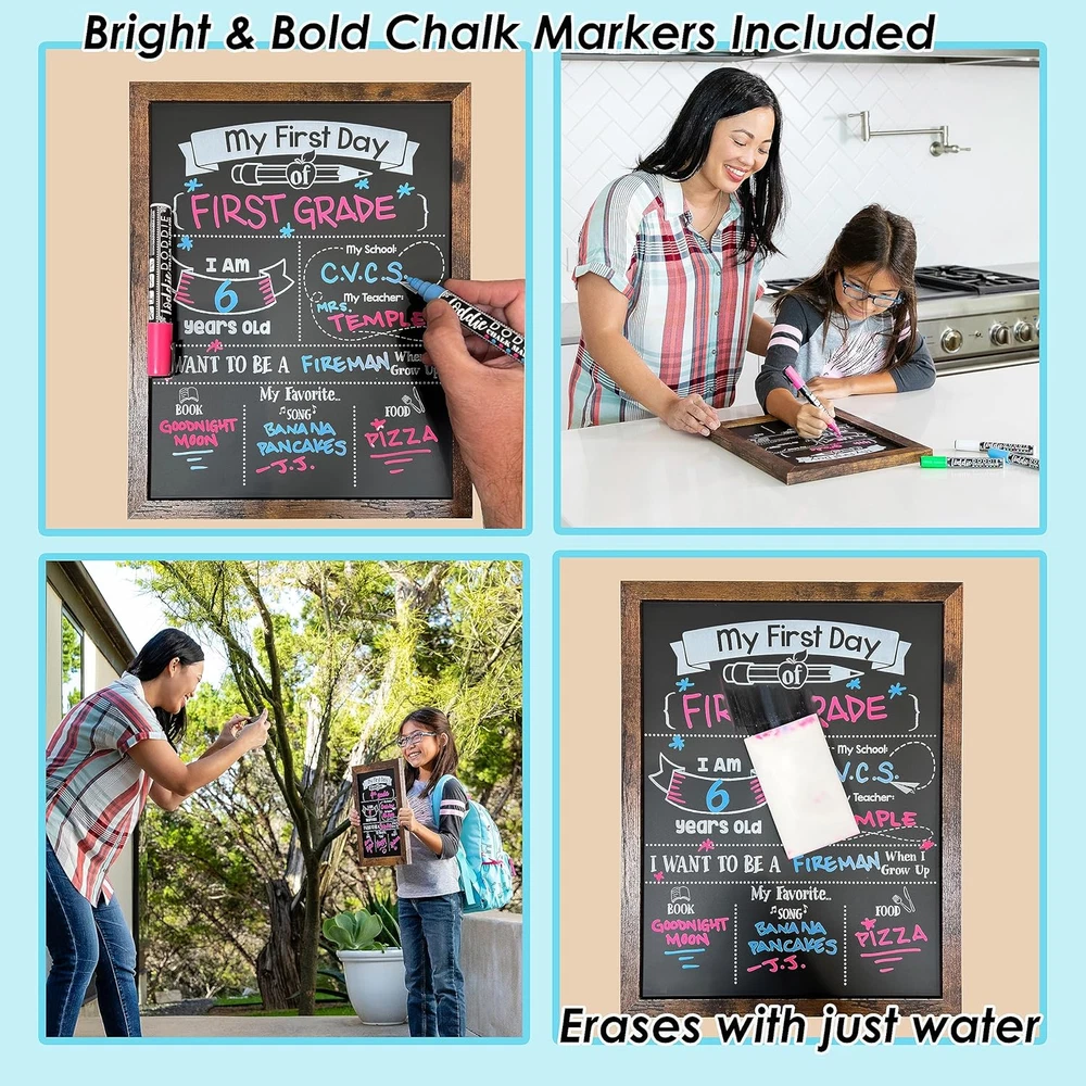 Capture special moments: year after year, watch your child grow and capture these special moments to look back on later in your child's life. Encourage self-expression: encourage your child to express their interests, dreams and wishes through the use of this board. Memories that last: take fun pictures with the adorable chalkboard signs and watch how your child has grown and changed over the year. Reusable: wipe with a damp cloth and reuse year after year! Double-Sided Magnetic Premium Chalkboard Surface Product Description