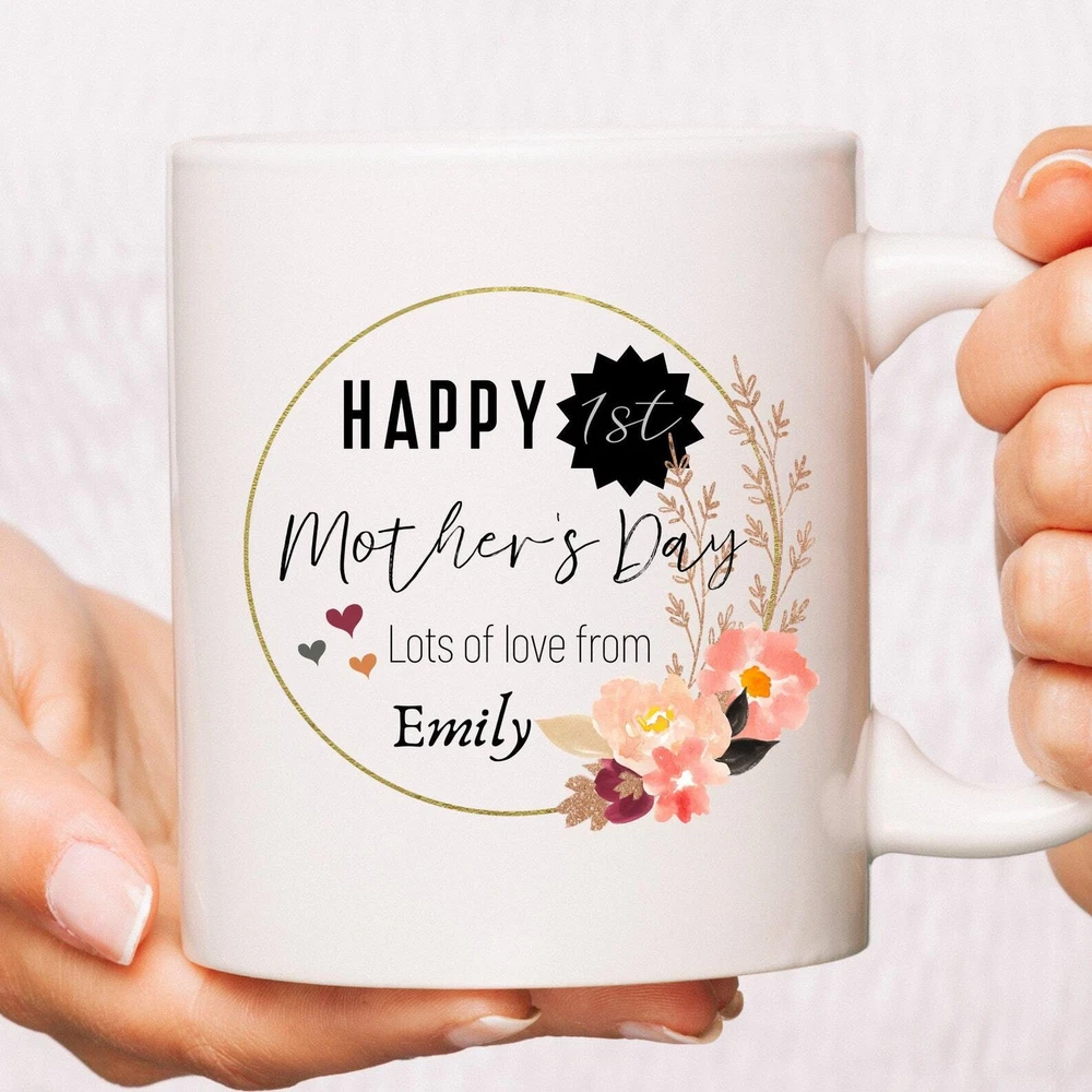 First Mother's Day Gift Personalised New Mum Mug Custom Mug For Mum Birthday Product Details.. This high quality 11oz. ceramic white mug has a premium hard coat that provides crisp and vibrant color reproduction sure to last for years. Perfect for all hot & cold beverages. The highest quality printing possible is used. It will never fade no matter how many times you wash it. Material: 100% Ceramic. Print both sides. Dishwasher and Microwave Safe. High Gloss + Premium White Finish. Printed in the U.S.A. Personalized & Custom. We support personalized and custom mug to add custom, when placing an order, you can add notes to the "order note" in shipping address section. Also you can contact us directly via message. Shipping Info. Ready to ship in 1 to 2 business days, All products are made-to-order and proudly printed in the United States. Shipped by USPS and DHL, You will receive your order in 5-7 days. Replace & Refund. All products are defective during shipping broken, chipped will be replaced free of charge. You are not satisfied with the product, we will refund 100% money to you. If any other issues arise, please do not hesitate to message, we would be more than happy to assist you.