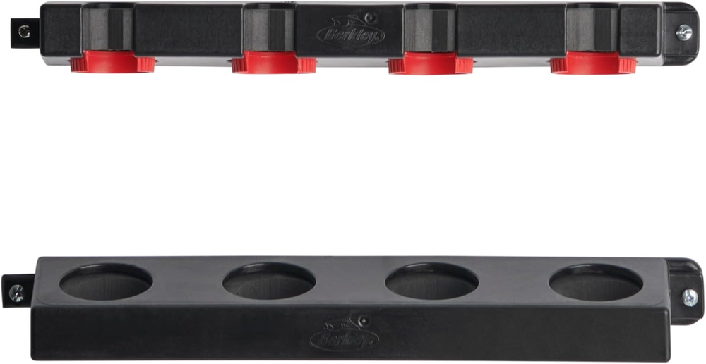 BERKLEY TWIST LOCK FISHING ROD RACK: An ideal solution for everyday anglers, this fishing rod wall rack saves space and keeps rods safely stored and organized. STORES UP TO 4 RODS: Soft foam grips keep your rods firmly secured without damaging the finish. Compatible with most types of fishing rods. A Twist Lock mechanism provides additional security. DURABLE, LIGHTWEIGHT CONSTRUCTION: Molded from lightweight polypropylene, this rod storage rack is resistant to damage and moisture. EASY TO MOUNT: Berkley fishing rod racks are easy to mount with standard tools. With its improved security, the Twist Lock Rod Rack is great for walls, ceilings, utility vehicles and boats. OUR STORY: The Berkley story involves hard work and struggle leading to unexpected success. The research and development that goes into our products results in innovative fishing gear with one purpose: to help you catch more fish. From the manufacturer About Us The Berkley story is deeply rooted in the idea of the American Dream. It's about hard work, struggle, and tough times. And it's about building partnerships to accomplish goals. Still, the story of Berkley is much more than the story of Berkley Bedell. It's also the story of dedicated co-workers and loyal customers, who were equally willing to take risks. It all began in Spirit Lake, Iowa, in June of 1937, when 16-year old Berkley Bedell took 50 USD from his paper route earnings to start a business selling his hand-tied flies to fishing tackle shops and vacationing anglers. In his upstairs bedroom, with hair clipped from the family dog, Stubby, and feathers from the backyard chickens, young Berkley crafted flies to entice local bluegill and bass from their underwater cover. The Berkley Fly Co. was founded. By the time Berk graduated from high school in 1939, he was employing several area girls who made flies, silkworm gut, and cable wire leaders in their homes. The business soon outgrew Berk's parent's basement and living room. He expanded to the second floor of the local grocery store, using a tub filled with ice and a fan for air conditioning. After attending the state university and serving in the Army Air Corps, Berk returned to Spirit Lake in 1945 to start Berkley and Company. The business focus was on its cable wire leaders. One evening, while reading Popular Science, Berk learned about a Connecticut company that was producing nylon-covered cable for sailboat rigging. After visiting their plant, he began to work on nylon-coated wire for use in fishing leaders. production began in Spirit Lake. Shortly after this, the distinctive Berkley heart logo was designed with the slogan "nylon leader with a heart of stainless steel." Berk next became interested in extruding nylon monofilament fishing line. At that time, all nylon came from DuPont. After receiving a license from DuPont, Berk returned to Spirit Lake to begin work developing equipment to produce nylon. The initial extrusion equipment consisted of reclaimed washing machine wringers, bicycle wheels, and other homespun materials. Soon Berkley was marketing private brand mono as well as Dew Flex monofilament. Ongoing experimentation would soon yield the company's breakthrough innovation - Trilene. In 1959, Berkley introduced Trilene at about the same time DuPont introduced Stren. To help introduce the new line, Berk sent out thousands of sample spools of line and asked store owners to have their best fisherman try it on a spinning reel. Fishermen loved the line and it began the successful launch of Berkley Trilene. The next four decades were a time of great growth for the company. In the 1960's Berkley entered into the rod business, which lead to international expansion in the 1970's. Soft plastic baits made an appearance in the 1980's. The 1990's through today have seen significant technology improvements in all of the Berkley products. From the beginning, Berkley has committed significant resources to research and development - a continuing strategy that has resulted in countless product innovations, including Berkley Trilene, the Lightning Rod, PowerBait, FireLine, and more recently Gulp!? and Gulp! Alive.