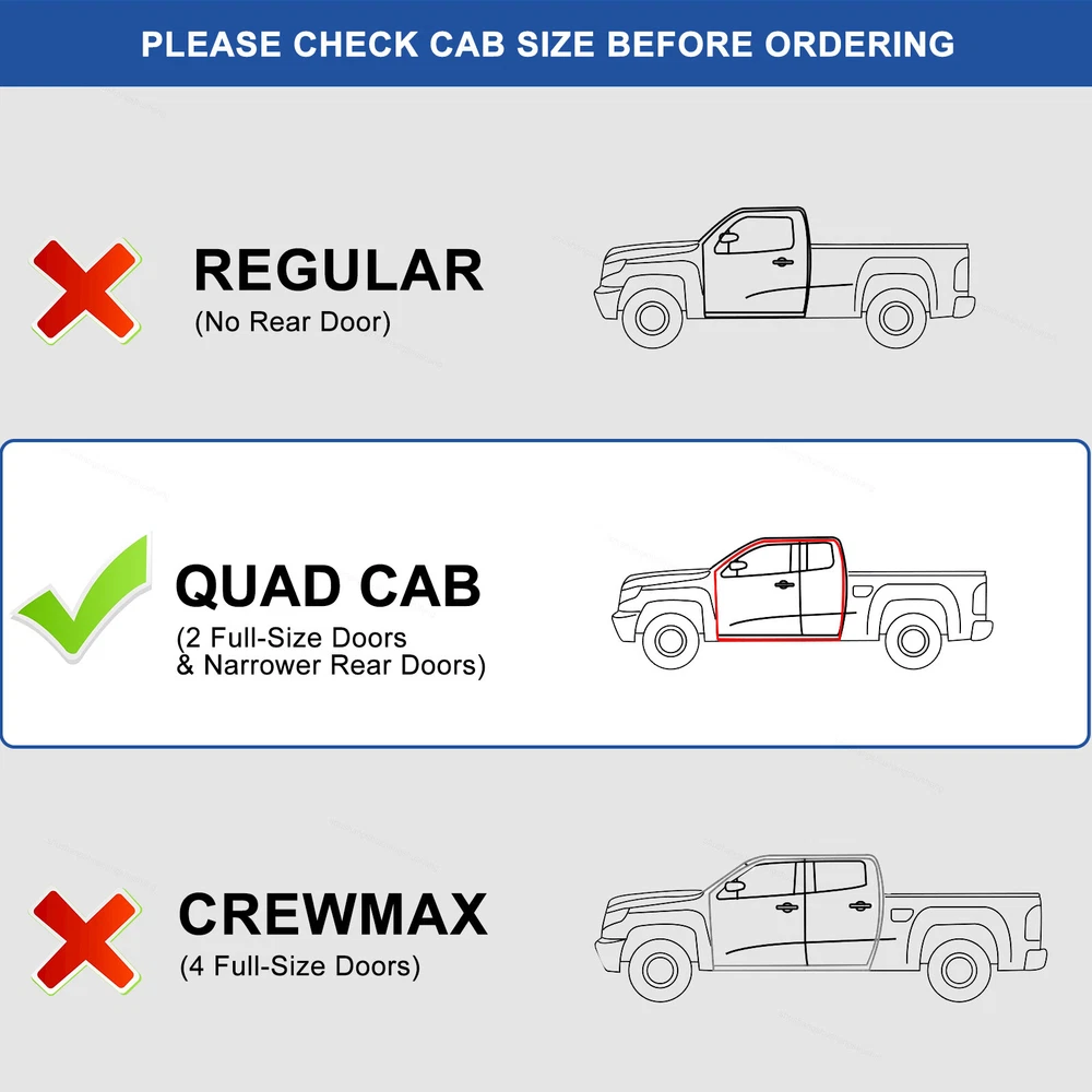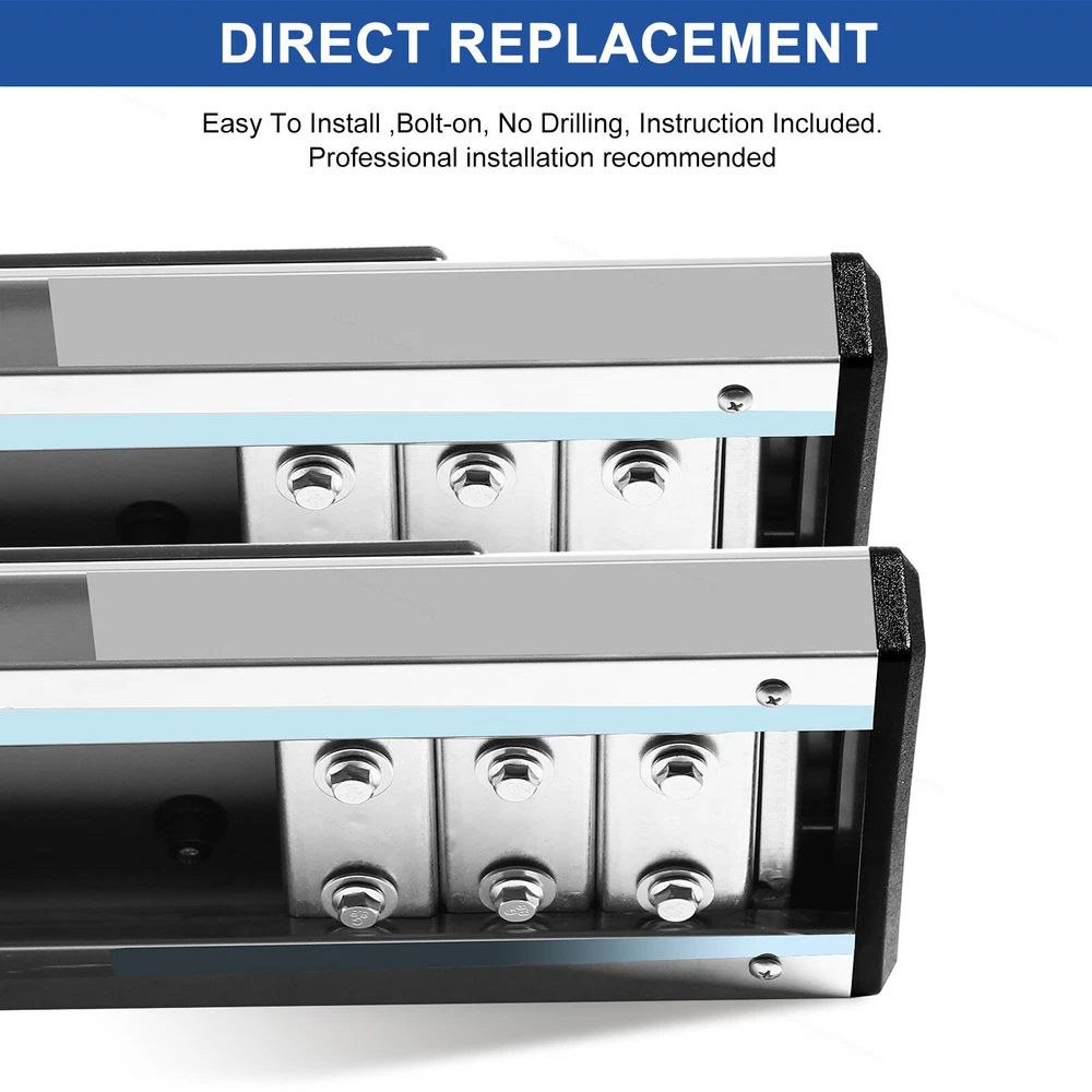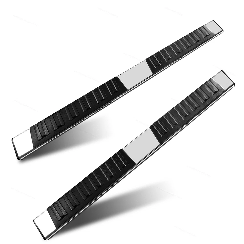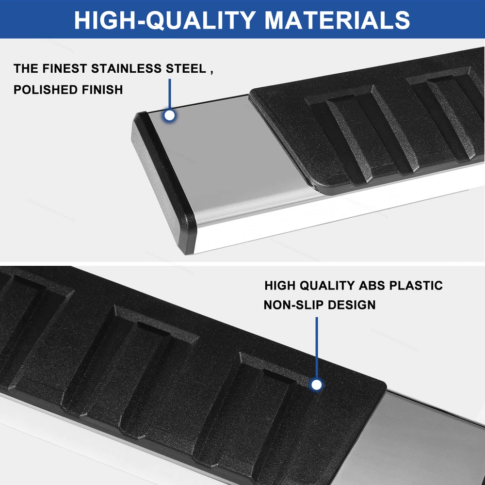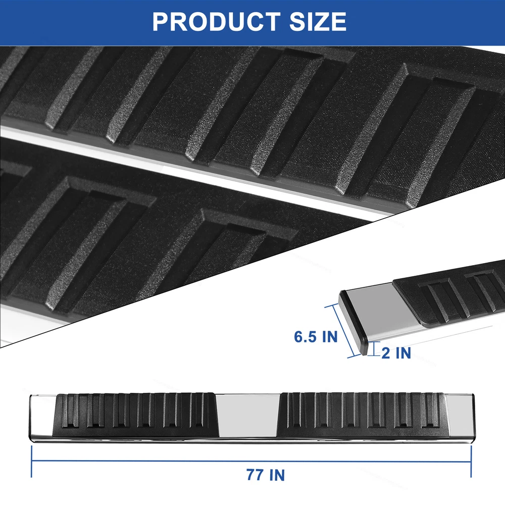 Fits 2019-2023 DODGE Ram 1500 Quad /Extended Cab 6.5" Running Board Side Step Nerf Bar Chrome Fitment Fits 2019-2023 Dodge Ram 1500 Quad Cab/ Extended Cab New Body Style (Exclude 2019-2022 Classic, ONLY Fit New Body,DO NOT Fit C lassic ) ONLY Fit Quad Cab with 2 full-size front doors & 2 narrower rear doors; DOES NOT Fits Crew cab; DOES NOT Fits Mega Cab. * Please refer to the Compatibility section of this listing page to see details And Confirm This Item Fits Yours Before Buying. Features High Quality Our items are 100% new quality items. When the step is retracted, the step can be matched with the bumper. It is completely convenient for you, providing you with long-term stable and excellent performance. Strength and Durability High-strength mounting bracket for holding up to 450 lbs on each side. 6.5 inches Width Non-slip, Large area will provide you with a strong support foothold, allowing you to get in and out of the bed easily and safely. Quality Materials Using enhanced high-quality materials, wear-resistant, corrosion-resistant, easy to clean, non-slip and long service life. Direct Replacement Easy To Install, Direct Bolt on , with an accurate screw hole. No Need to Drill, and with the Installation instruction. The Running Boards meets or exceeds the oem standard, and has been tested in the factory, perfectly matched with the original car, and can be installed directly. 1 Year Warranty This item have 1-year warranty. In the event, the item should fail due to manufacturing defects during intended use, we will replace the part by free.Don't Worry. Specification Condition : 100% New And High Quality Guaranteed Quantity : 1 Pair Material : Stainless Steel With ABS Design Placement on Vehicle : Left & Right Color : Chrome and Black Fitment Type : Direct Replacement Finish: Polished Item Size(H x W x H):77 in x 6.5 in x 2 in Maximum Load Capacity:Holding up to 450 lbs on each side Package Included 1 × Left Side Step Bars Running Board 1 × Right Side Step Bars Running Board and Mounting Kits and Installation instruction Installation * Easy To Install, Direct Bolt on, with an accurate screw hole, No Need to Drill. * The Running Boards meets or exceeds the oem standard, and has been tested in the factory, perfectly matched with the original car, and can be installed directly. Shipping We have multiple warehouses in US, and will choose the nearest one for shipping, according to your address and our inventory. Contact us Your satisfaction is guaranteed! If for any reason you are unhappy with your item, just return it within 30 days for a full refund. Please contact us prior to initiating a return so that we can issue you a refund authorization.