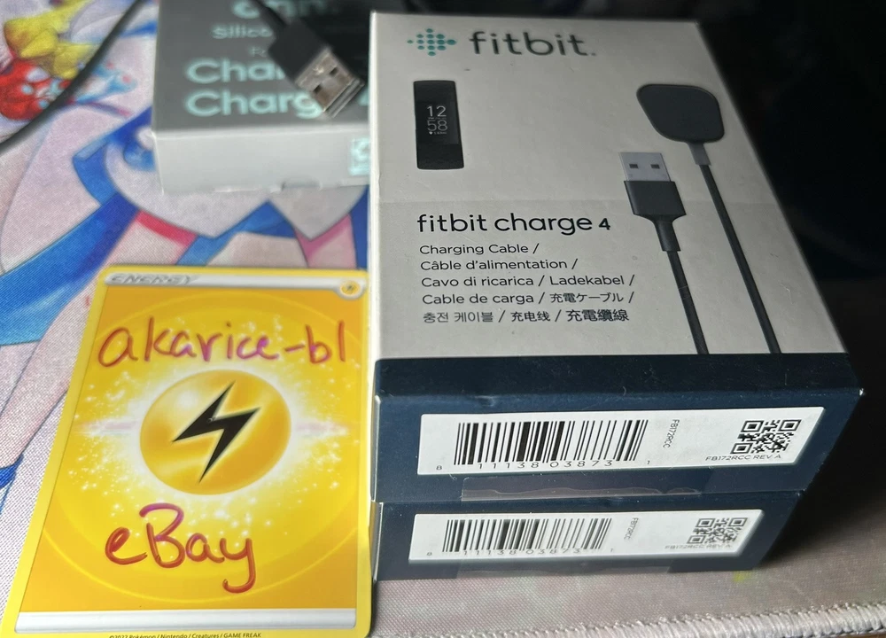 Please see the last photo for a closer view of slight scratching on the top left of the screen. Does not impede usage but the scratches are noticeable. This is a lot containing a Fitbit Charge 4, 3 Fitbit Brand Chargers, the original band, and 2 replacement Onn adjustable bands. The watch is shown with one of the replacement bands attached and will ship like this with the original band in one of the replacement boxes. The watch has been wiped and is ready for setup as a new device, hence the wrong time and date on the listing photo where it is waiting to pair to the app. Works great with a solid battery life (after a good charge as it has been unused for a while.) I simply have no need to keep it as I upgraded to an Apple Watch. Original product box is not included.