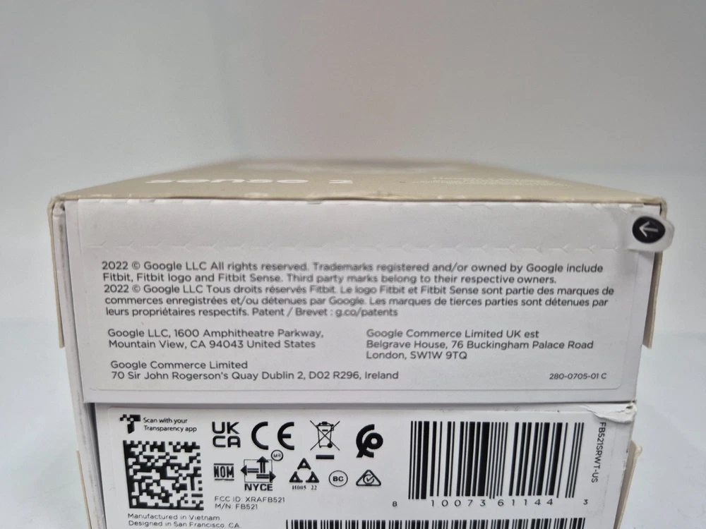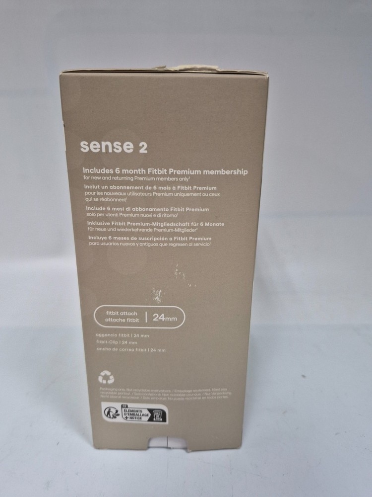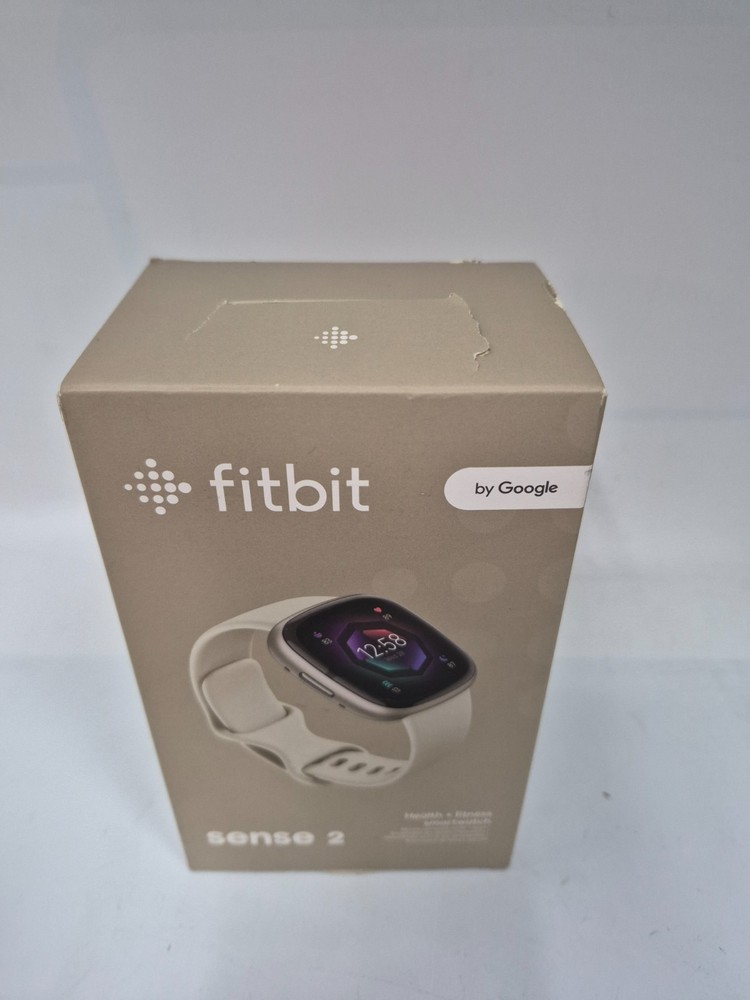 Brand: Fitbit (by Google) Model: Sense 2 Health + Fitness Smartwatch Condition: New, in original open box (As shown in unboxing picture). Color/Finish: Platinum Aluminum Case with a Lunar White Infinity Band. Included Bands: Comes with both Small (S) and Large (L) infinity bands. Key Features: ●Advanced Health Tracking: Includes an ECG app for heart rhythm assessment and a cEDA sensor for all-day stress tracking. ●Built-in GPS: Track your pace and distance during outdoor runs or rides without your phone. ●6+ Day Battery Life: Spend more time moving and less time charging. ●Essential Apps: Works with Google Maps, Google Wallet, and receives all smartphone notifications. Compatibility: Requires the Fitbit app and is compatible with iPhone and Android devices. Band Size: Uses a standard 24mm attachment size. What's Included in the Box: 1)Fitbit Sense 2 Smartwatch (Platinum Aluminum Case / Lunar White Band, protected by gray covering) 2)Small (S) and Large (L) Infinity Bands (Lunar White) 3)Charging Cable. Compatibility Note Requires use of Fitbit app with compatible iPhone or Android devices. Google account required. "The item is new/open-box, but please note the outer packaging has significant cosmetic wear. This includes a notable dent on the bottom right corner, edge scuffs, and sticker residue/torn paper on the front and top from inventory labels (see photos). The internal contents are unaffected and remain in pristine, original condition."