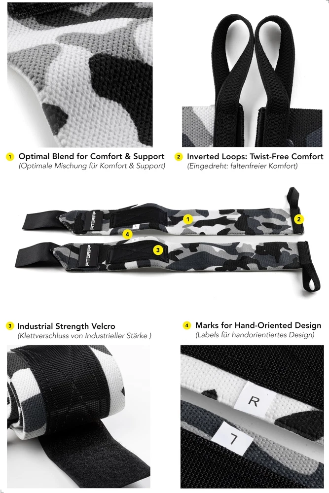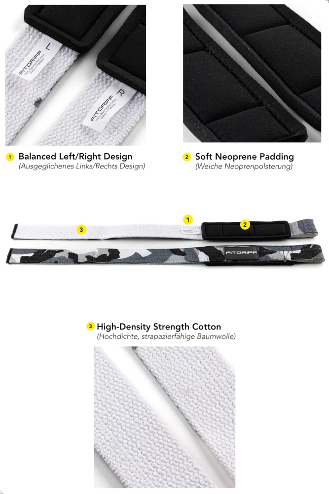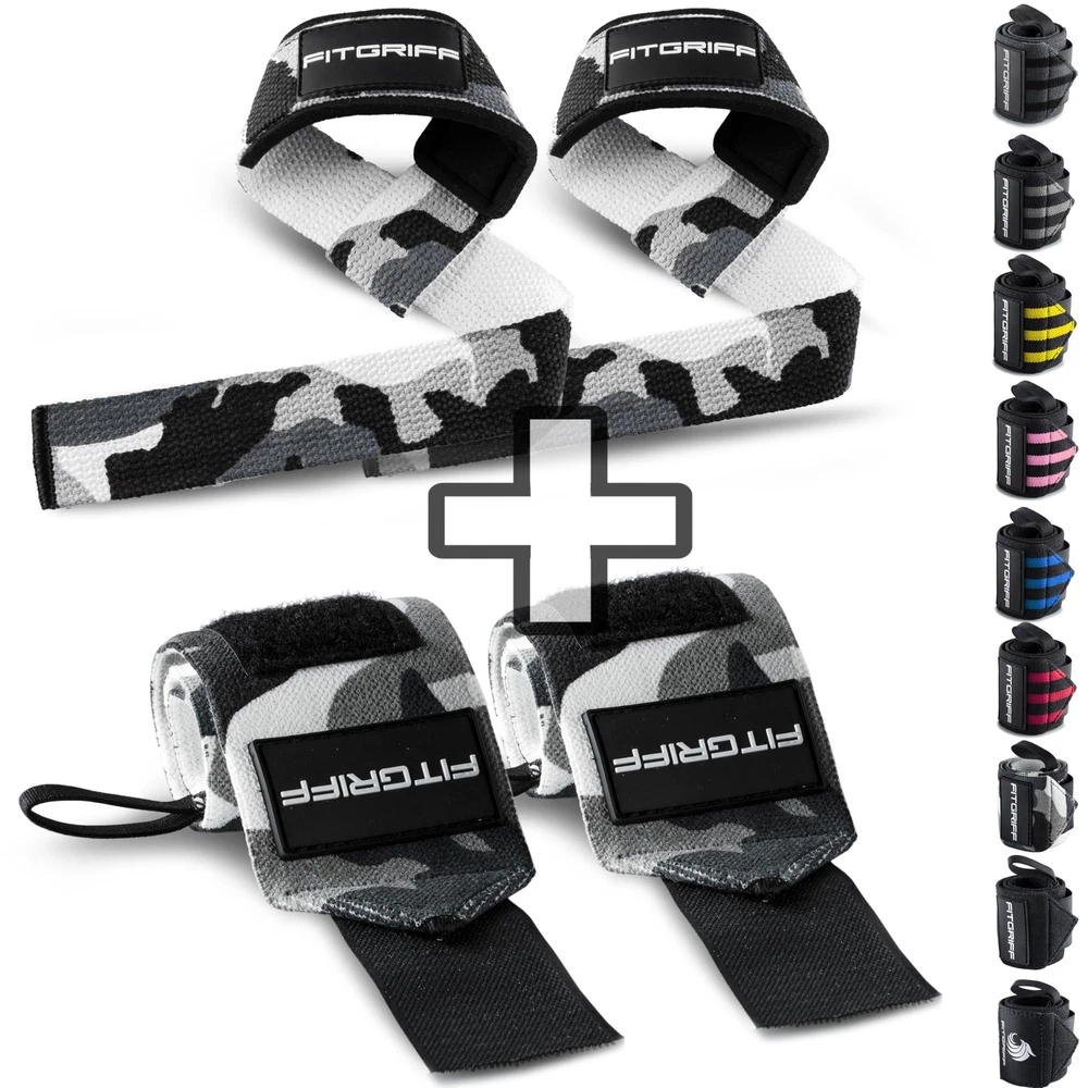 ELEVATE YOUR STRENGTH TRAINING - Embrace a new level of precision and power with FITGRIFF's unique lifting straps and wrist wraps combo. Tailored gear for exercises like deadlift, pull-up, bench press and pushup. Our set ensures enhanced grip and protection, revolutionizing your experience in working out. UNMATCHED COMFORT, ZERO DISTRACTIONS - Enjoy extra comfort with our wrist wraps, featuring ergonomically placed thumb loops, and deadlift straps with neoprene padding. This thoughtful design provides a soft, wrinkle-free fit, allowing you to focus solely on every lift and push. HIGH-QUALITY AND RESILIENCE - Crafted from 100% premium cotton, our lifting straps boast unparalleled durability. The wrist cuffs are reinforced with anti-fray technology and robust seams, ensuring they withstand heavy duty bodybuilding sessions. UNIVERSAL FIT, INTUITIVE DESIGN - Our anti-slip lifting straps and wrist wraps are designed to fit any wrist size. They are clearly labeled "left" and "right" for easy identification, ensuring a quick, hassle-free start to your back, shoulder, and chest workout routines. SIMPLIFIED INSTRUCTIONS FOR IMMEDIATE USE - Begin your fitness journey effortlessly with our detailed, user-friendly instructions. Designed for both men and women athletes, our guide ensures a safe, efficient first-time experience.