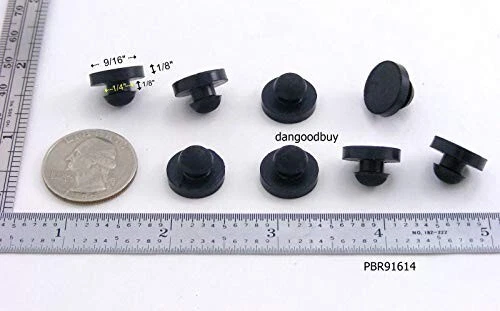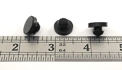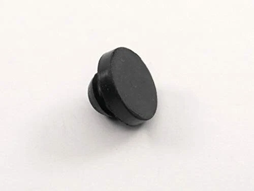 This Hard SBR Rubber Push-In Bumper is designed for use as durable rubber feet or protective bumpers in a variety of applications. With a flat pad surface and a bumper diameter of 9/16", it provides stable support while safeguarding surfaces from damage. The stem fits securely into a 1/4" hole, and the 1/8" stem length accommodates a panel thickness of up to 1/8", ensuring a snug and reliable fit. Made from high-quality, nonmarking black SBR rubber, this bumper offers a durometer hardness of 60A, making it firm yet flexible enough to absorb impact and reduce vibration. It can be used in environments with temperatures ranging from -20°F to +180°F, offering long-lasting protection for your equipment. Ideal for furniture feet, electronics, and appliances, this push-in bumper prevents scratches, minimizes abrasion, and provides an extra layer of stability.