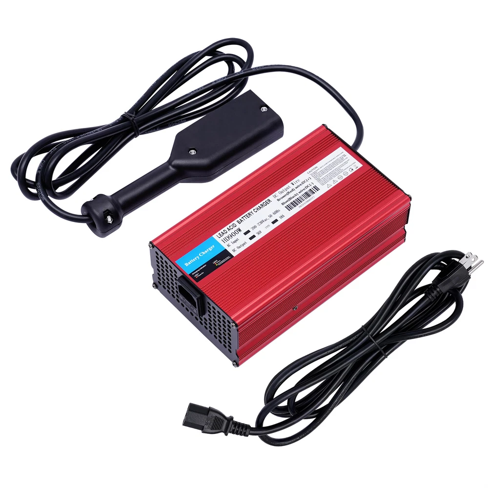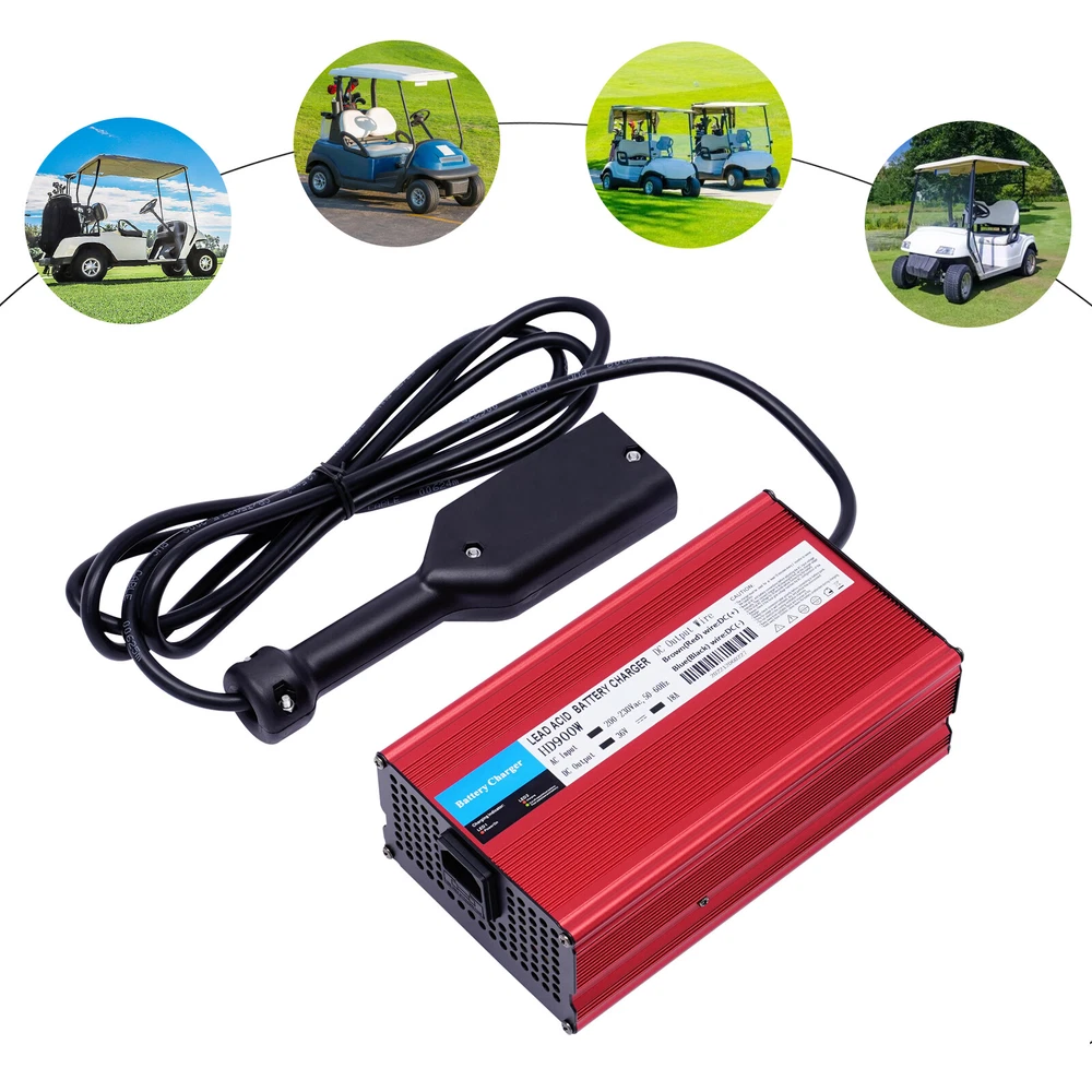 36V 18A Golf Cart Battery Charger Input 100-120V + Powerwise Cable D Style for EZ-GO Description This battery charger with >85% conversion rate, multiple protection, and good heat dissipation is efficient and reliable. It not only saves charging time, saves power but also extends battery life. Moreover, it can serve you for a long time with high-quality materials and excellent craftsmanship. Key Features Rugged and Durable: The high-quality aluminum alloy and oxidized surface make this product very strong, durable, and resistant to corrosion and rust, which greatly extends its service life. Energy Efficient: 18 Amp charges faster than 5 Amp chargers! You can save double the time to fully charge your golf cart. Trickle Mode: When fully charged, the charger stops chargin Fits for 1996-2023 EZGO TXT 36V 18A Golf Cart Battery Charger with Power Cord 36V 18A Golf Cart Battery Charger Input 100-120V + Powerwise Cable D Style for EZ-GO Package Included 1*Golf Cart Charger 1*Power Cord Specification Model: HD900W Material: Aluminum Alloy AC Input: 100-120V 50-60HZ DC Output: 36V 18A Power:900 w Plug Standard: D-Plug/Powerwise Style Plug(US Standard) Color: Red Proces: Oxidation Overheat Protection: >70℃/158℉ Stop, <65℃149℉ Start Waterproof Rating: IP32 Applicable Battery Type: Lead-acid Battery LED Indicator: Red Light - Charging, Green Light - Full Charge Conversion Efficiency: >85% Operating Ambient Temperature: -10~40℃/14-104℉ Power Cord Length: 1.5m/4.92ft Input Cord: 1m/3.28ft Charging Time: 1-8 hours (The Capacity of the Battery Varies, the Time Varies) Gross Weight: About 2.4kg/5.29lbs Package Size: 34*23*11cm/13.38*9.05*4.33in Product Size:21*12*7.3cm/8*4.7*2.8in Description This battery charger with >85% conversion rate, multiple protection, and good heat dissipation is efficient and reliable. It not only saves charging time, saves power but also extends battery life. Moreover, it can serve you for a long time with high-quality materials and excellent craftsmanship. Key Features Rugged and Durable : The high-quality aluminum alloy and oxidized surface make this product very strong, durable, and resistant to corrosion and rust, which greatly extends its service life. Energy Efficient : 18 Amp charges faster than 5 Amp chargers! You can save double the time to fully charge your golf cart. Trickle Mode : When fully charged, the charger stops charging and enters trickle mode to prevent overcharging, which extends the life of the battery. Overheat Protection : When the internal temperature is greater than 158℉, the product will automatically stop charging and wait until the temperature is below 149℉, the product will start charging to protect the product from damage, which greatly improves safety. High Safety : Short circuit, reverse connection (it is recommended to connect the battery first and then turn on the power), over-current, over-voltage, and over-temperature protection functions provide all-around protection for the product to make it stable and safe operation. Excellent Heat Dissipation Performance : It has a built-in fan for automatic heat dissipation to reduce the possibility of its failure due to high temperature. Easy to Carry : The compact and lightweight charger ( 8*4.7*2.8 inches in size) allows you to carry it anywhere easily. Protective Packaging : It is carefully packed in a sturdy cardboard box and soft foam to avoid damage during transportation. Excellent Adaptability : High-quality materials and professional technology enable it to operate properly in environments from 14℉ to 104℉, which greatly expands the usage scenarios. Customer Service : We aim to provide quality products and services. If you have any problems, please feel free to contact us. We will reply and solve the problem for you as soon as possible. Details Extended Power and Input Cords : The extended power cord (4.92feet in length)and input cord(3.28 feet in length) makes the power supply and use more convenient. Multiple Heat Sink Holes : Multiple heat sink holes help the product dissipate heat promptly to extend its life and improve charging efficiency. LED Indicators : LED power indicator and LED charging indicator help you easily identify the charging status. Red light for charging and green light for full charging. Application It is widely used in various lead-acid batteries, such as 36V EZGO TXT golf carts from 1996 to 2023, electric cleaning carts, electric forklifts, balance bikes, and other kinds of electric vehicles, and also for robots, drones, UPS uninterruptible power supply, intelligent storage, and other mechanical equipment. Notes 1. Please make sure the plug link is intact before use. 2. Please read the manual carefully before use. 3. Please check your original charger to make sure the output and the size of the connector match. 4. This charger has a reverse polarity protection relay, when the charger AC power is on but disconnected from the battery, there is no output voltage and current. When it is connected to the battery, it will have voltage and current output. 5. Determine the golf cart voltage by the nameplate. 6. Please allow the slight color difference caused by the shooting light and 1-3cm error due to manual measurement. Please make sure you do not mind before you order. Payment Delivery details Terms of sales About us Contact us Payment We accept ebay payment 。 Fees such as import duties, taxes are not included in the item price or shipping costs. These charges are the buyer's responsibility. Delivery details Shipping: 2-9 working days to: USA Terms of sales We maintain high standards of excellence and strive for hundred percent customer satisfaction. Feedback is very important to us. We hope that you contact us immediately before you give neutral or negative feedback, so that we can address your concerns. It is impossible to address issues if we do not know about them! About us Your satis faction is our ultimate goal. We work hard to earn your trust and