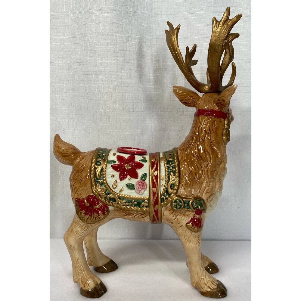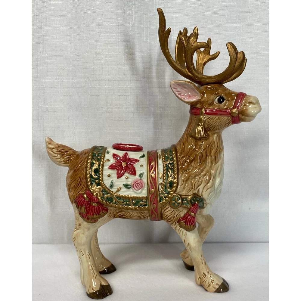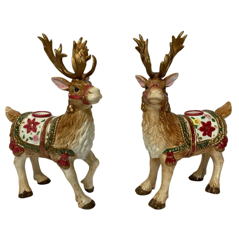 Add a touch of holiday magic to your home with this beautiful candle holder pair from Fitz & Floyd. Featuring a charming reindeer design, these candle holders are perfect for creating a cozy and inviting atmosphere during the festive season. The multicolor design adds a pop of color to any room, making them a great addition to your holiday decor. Crafted with high-quality materials, these candle holders are sure to last for years to come. They are perfect for use in any type of candle, making them a versatile addition to your home decor. Whether you're looking to add some ambiance to your dinner table or simply want to create a cozy atmosphere in your living room, these Fitz & Floyd candle holders are the perfect choice.