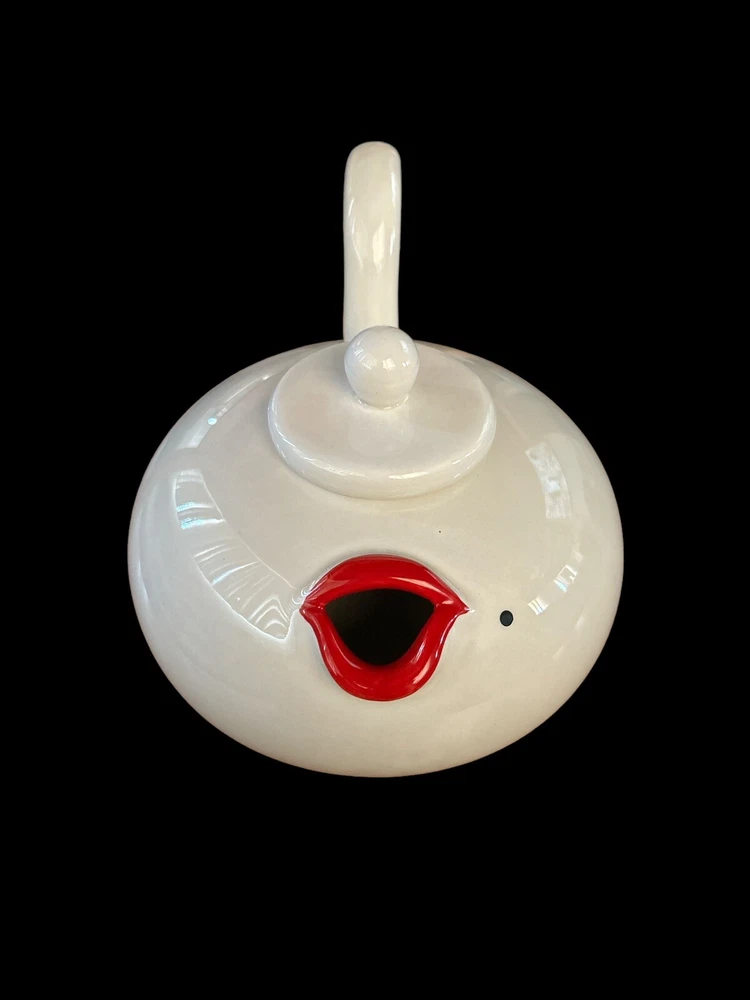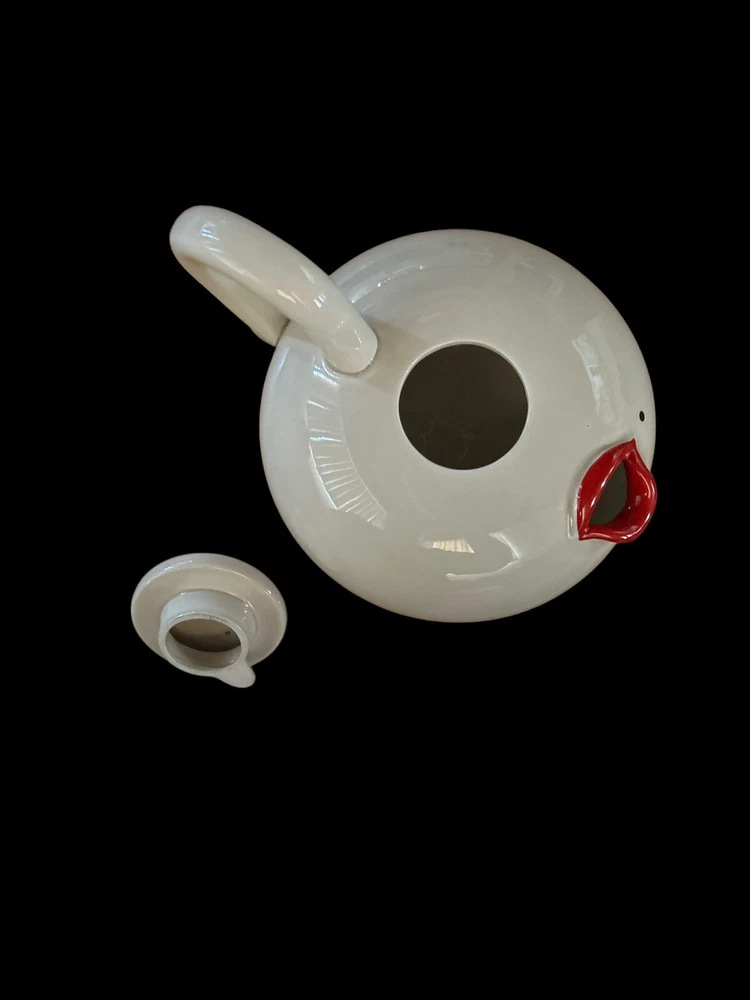 Add a touch of Hollywood glamour to your tea time with this vintage Fitz & Floyd teapot. The ceramic teapot features a stunning "Lip Service" design that is reminiscent of the iconic Marilyn Monroe. The teapot is perfect for all occasions and is sure to impress your guests. This teapot is a must-have for any collector and serves as a unique addition.