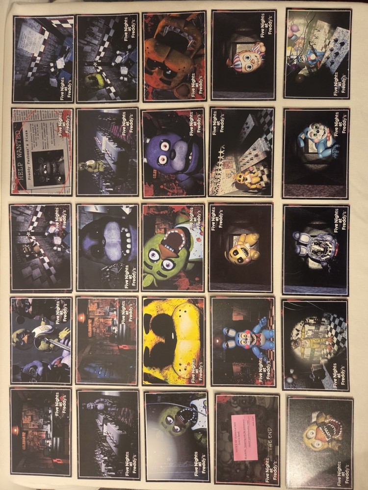 Lot of 60 FNAF trading cards from 2016. All in great condition. One of the cards is a double so there are 59 different cards. Thanks for looking.