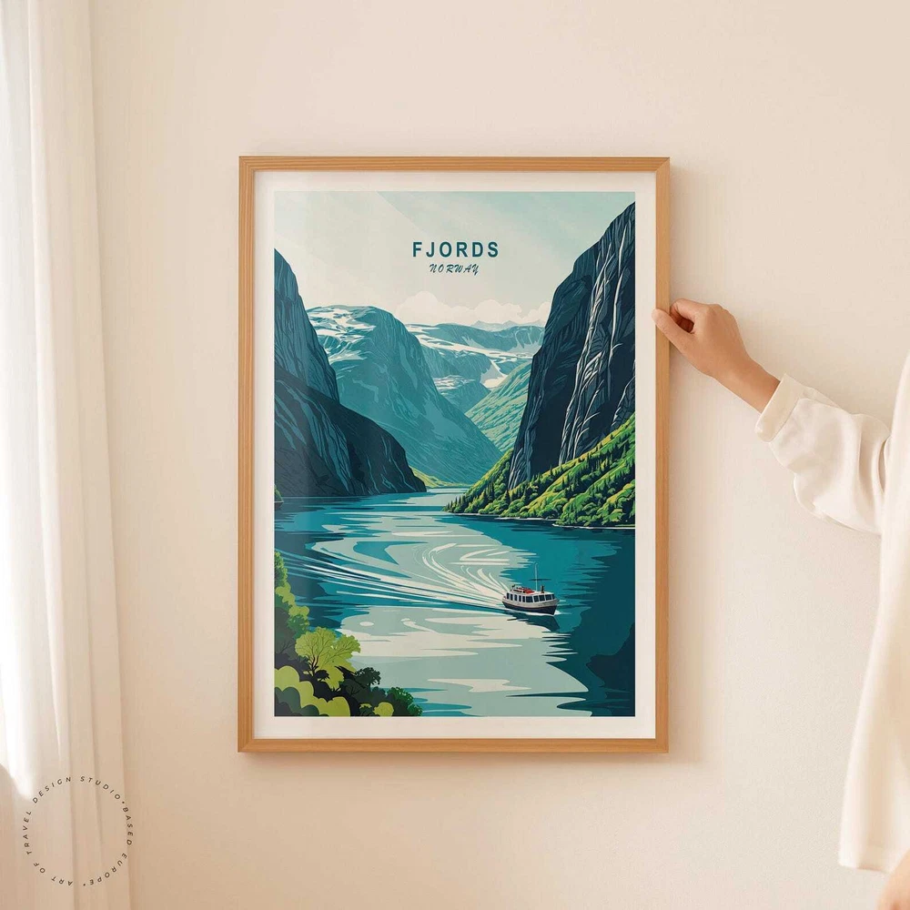 Fjords Norway Travel Poster Norway Wall Art Fjords Print Coast Poster Birthday Gifts Wedding Present Custom Travel Poster Material: Premium luster photo paper Print type: Inkjet printing One side printed + The finish provides the highest possible resolution and color saturation + Lasts up to 200 years in color and 400 years in black-and-white + Printed on high-quality resin-coated photo base paper medium + Posters can be hung with double-sided tape, tacks, or framed + Hand washing with a gentle cry cloth is recommended for extended durability I will hand select the best choice of paper for your chosen design to ensure top quality results for a beautiful, bright and luxurious print. All prints are sealed in cellophane slips for protection during transportation, and are shipped in a protective cardboard envelope.