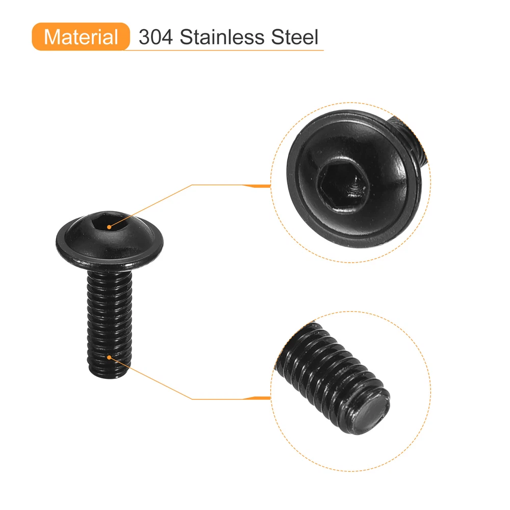 Document Description:1. Material: These flanged button head socket cap screws are made of 304 stainless steel material, which provides good corrosion resistance, strength, and durability. The black oxide enhances its corrosion resistance.2. Design: The flanged button head design offers a low profile and provides a larger bearing surface, ensuring a secure hold and distributing the load evenly. The flanged design helps to prevent over-tightening and provides a neat finish.3. Installation: To use these flanged button head socket cap screw, simply align the screw with the intended hole and fasten it using a hex key wrench.4. Application: These button head socket screws are suitable for various applications such as machinery, automotive, electronics, and furniture assembly. Their sturdy construction, corrosion resistance, and stylish black color make them good for both functional and aesthetic purposes.Specification:Material: 304 Stainless SteelFinish: Black OxideThread Size: M4x12mm / M4 x 0.47"(D*L)Pitch: 0.7mmInner Hex Diameter: 2.5mm / 0.1"Screw Head Size: 7 x 2.08mm / 0.28" x 0.08"(D*T)Flange Diameter: 9.11mm / 0.36"Package Content: 100pcs x Flanged Button Head Socket Cap Screws Flanged Button Head Socket Cap Screws, 100pcs M4x12mm 304 Stainless Steel Bolts Description: 1. Material: These flanged button head socket cap screws are made of 304 stainless steel material, which provides good corrosion resistance, strength, and durability. The black oxide enhances its corrosion resistance. 2. Design: The flanged button head design offers a low profile and provides a larger bearing surface, ensuring a secure hold and distributing the load evenly. The flanged design helps to prevent over-tightening and provides a neat finish. 3. Installation: To use these flanged button head socket cap screw, simply align the screw with the intended hole and fasten it using a hex key wrench. 4. Application: These button head socket screws are suitable for various applications such as machinery, automotive, electronics, and furniture assembly. Their sturdy construction, corrosion resistance, and stylish black color make them good for both functional and aesthetic purposes. Specification : Material: 304 Stainless Steel Finish: Black Oxide Thread Size: M4x12mm / M4 x 0.47"(D*L) Pitch: 0.7mm Inner Hex Diameter: 2.5mm / 0.1" Screw Head Size: 7 x 2.08mm / 0.28" x 0.08"(D*T) Flange Diameter: 9.11mm / 0.36" Package Content: 100pcs x Flanged Button Head Socket Cap Screws Hot Item Payment 1.We accept eBay payment . 2.Payment must be received within 7 business days of auction closing. Shipping 1.We ship to your eBay or Paypal address. Please make sure your eBay and Paypal address is correct before you pay. 2.Items will be shipped within 1-3 business day when we received payment. 3.Delivery time depends on destination and other factors. Description Policy Flanged Button Head Socket Cap Screws, 100pcs M4x12mm 304 Stainless Steel Bolts Description: 1. Material: These flanged button head socket cap screws are made of 304 stainless steel material, which provides good corrosion resistance, strength, and durability. The black oxide enhances its corrosion resistance. 2. Design: The flanged button head design offers a low profile and provides a larger bearing surface, ensuring a secure hold and distributing the load evenly. The flanged design helps to prevent over-tightening and provides a neat finish. 3. Installation: To use these flanged button head socket cap screw, simply align the screw with the intended hole and fasten it using a hex key wrench. 4. Application: These button head socket screws are suitable for various applications such as machinery, automotive, electronics, and furniture assembly. Their sturdy construction, corrosion resistance, and stylish black color make them good for both functional and aesthetic purposes. Specification : Material: 304 Stainless Steel Finish: Black Oxide Thread Size: M4x12mm / M4 x 0.47"(D*L) Pitch: 0.7mm Inner Hex Diameter: 2.5mm / 0.1" Screw Head Size: 7 x 2.08mm / 0.28" x 0.08"(D*T) Flange Diameter: 9.11mm / 0.36" Package Content: 100pcs x Flanged Button Head Socket Cap Screws Hot Item Payment 1.We accept eBay payment . 2.Payment must be received within 7 business days of auction closing. Shipping 1.We ship to your eBay or Paypal address. Please make sure your eBay and Paypal address is correct before you pay. 2.Items will be shipped within 1-3 business day when we received payment. 3.Delivery time depends on destination and other factors.