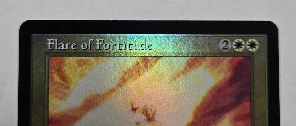 Elevate your Magic: The Gathering collection with the Flare of Fortitude card from Modern Horizons 3, presented in a stunning foil finish. This rare instant card, featuring the artistic touch of Winona Nelson, is a strategic addition to any deck, offering a powerful life gain when cast at the right moment. Crafted by Wizards of the Coast, the card comes in English language, adhering to the standard card size for seamless integration into your collection. With its '2ww' cost, it's a versatile piece that can turn the tide of the game, making it a must-have for players and collectors alike.