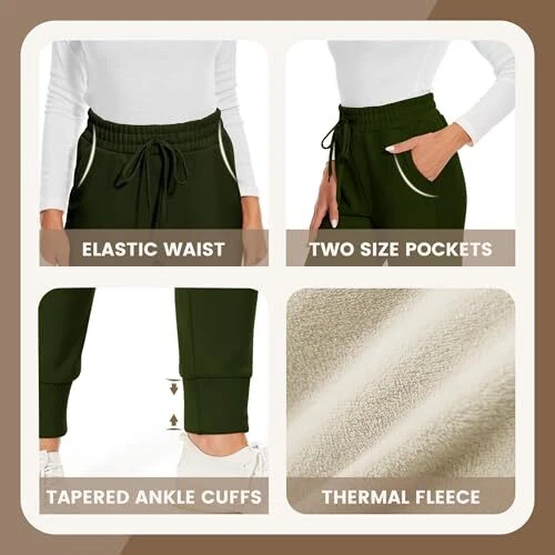 Fleece Lined Sweatpants Women - Joggers for Women with Medium Army Green