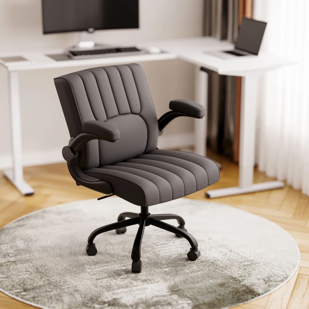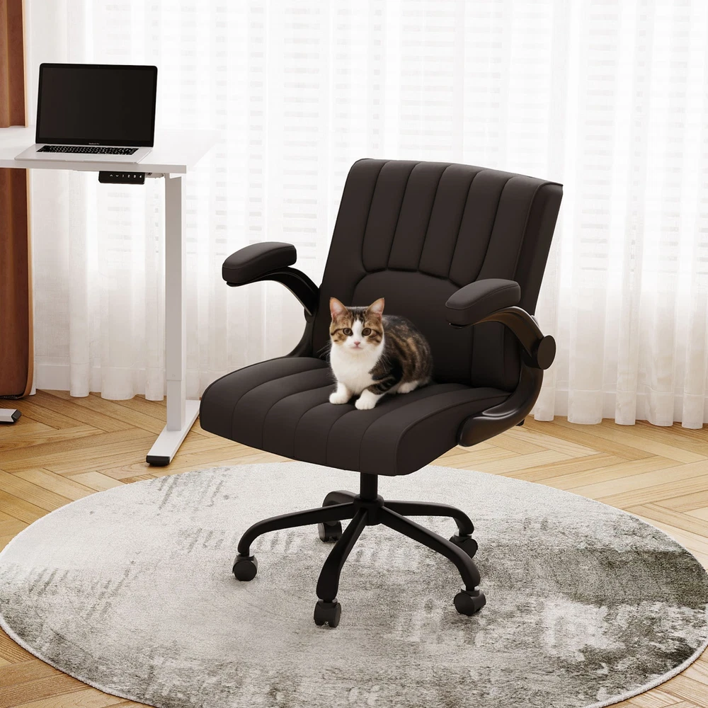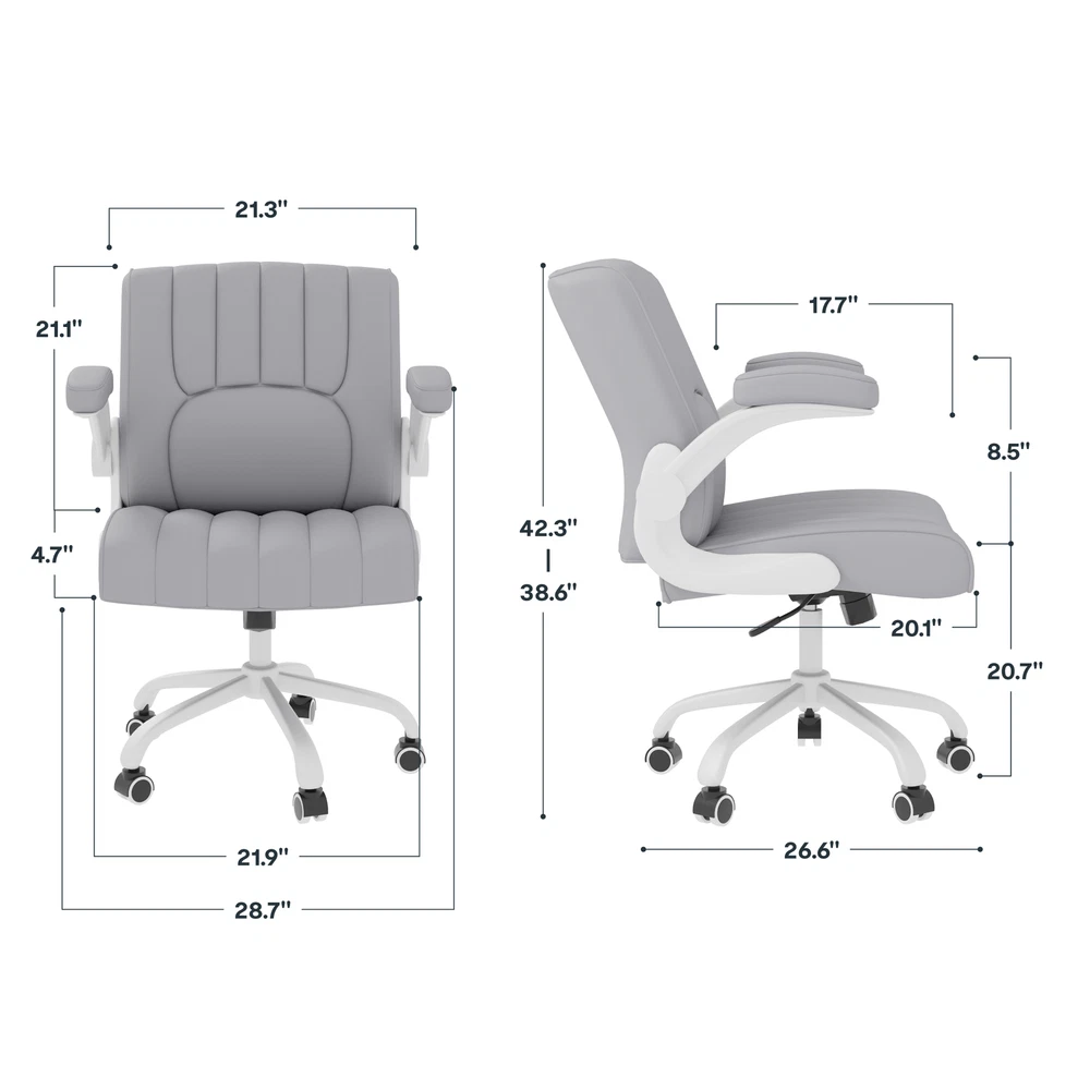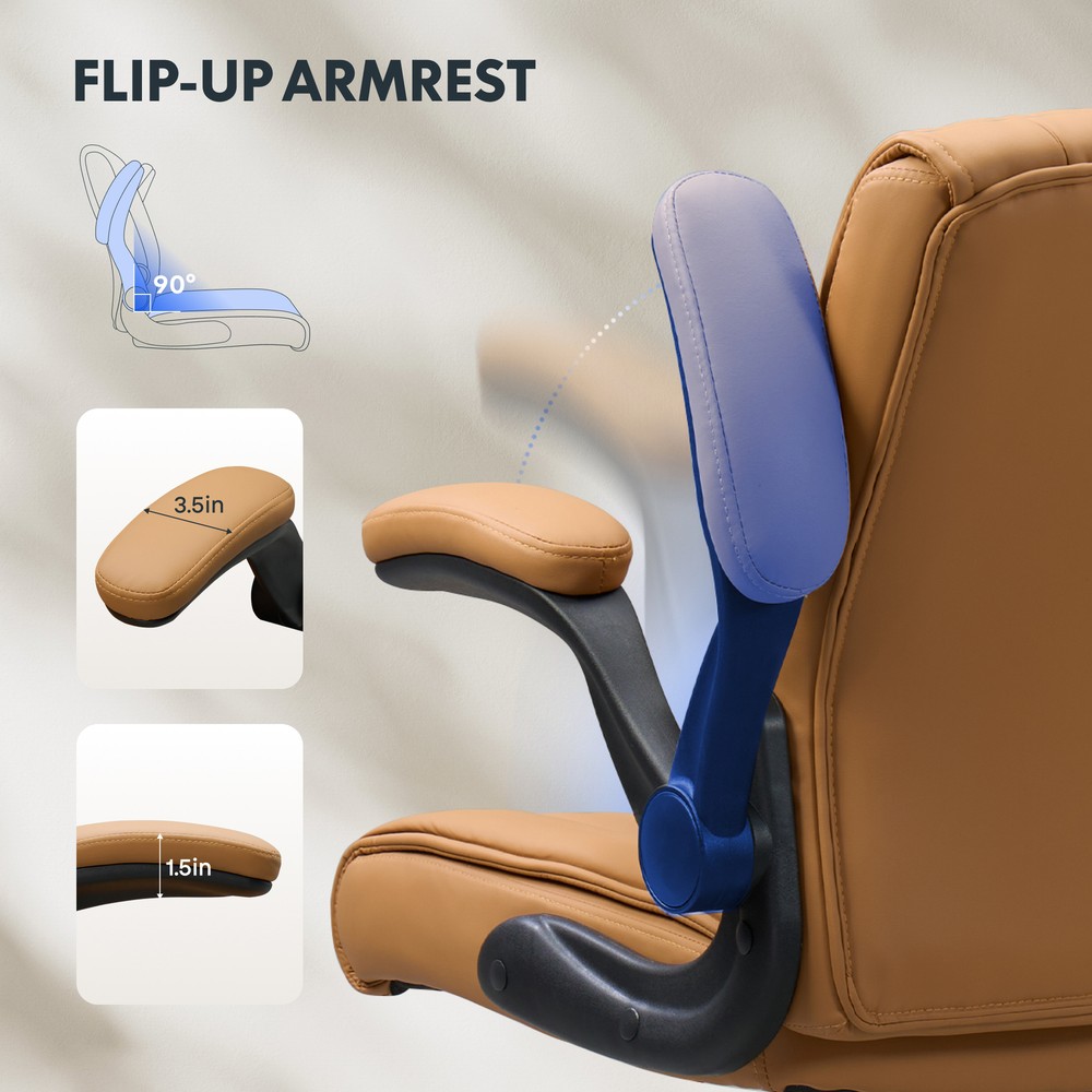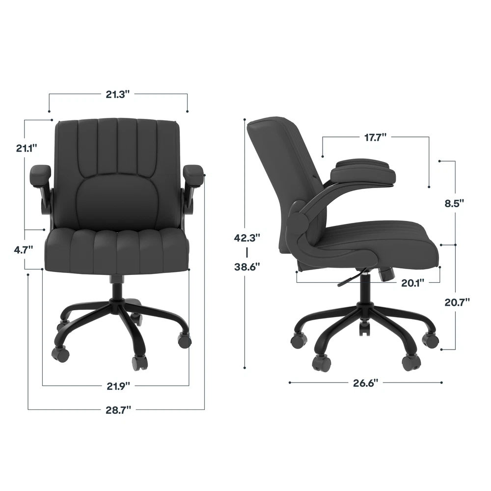 【 Chair with Different Options 】Our chairs come with various selections, including seat cushion sizes, weight capacity, and armrest designs. Opt for a larger cushion for more space or a chair without armrests to save room. 【 Versatile Home Office Chair 】You can use the chair as a computer chair, gaming chair, office chair, or task chair to meet diverse needs. Plus, the wheels are compatible with surfaces like carpet, tile, and wood, ensuring smooth and effortless mobility. 【 ECO Pet-Friendly Leather 】The desk chair’s surface is covered with premium PU leather, offering excellent waterproof and wear-resistant properties. Unlike fabric, it’s easy to clean with a damp cloth, providing both durability and convenience. 【 Sturdy Base 】Designed with a sturdy engineered wood seat base, this home office chair ensures reliable weight-bearing and stability, giving you peace of mind when using it. 【 Versatility 】Enhance your work or leisure experience with this multi-functional chair. Featuring 3.7 inches of height adjustment, a 360-degree swivel, and a 30-degree tilt angle, it offers customizable settings for maximum comfort. Details: Product Height: 38.6" - 42.3" Product Dimensions: 26.6" D× 28.7" W× 42.3"H Adjustable Seat Height: 20.7" - 24.4" Weight Capacity: 280 lbs Lifting Mechanism: Gas Spring Seat Material: Upgraded Foam Frame Material: PU Leather Special Features: Comfy Leather Cushion, Adjustable Height, Reliable Weight Capacity, Chair for Men and Women, Suitable for Adults and Teens